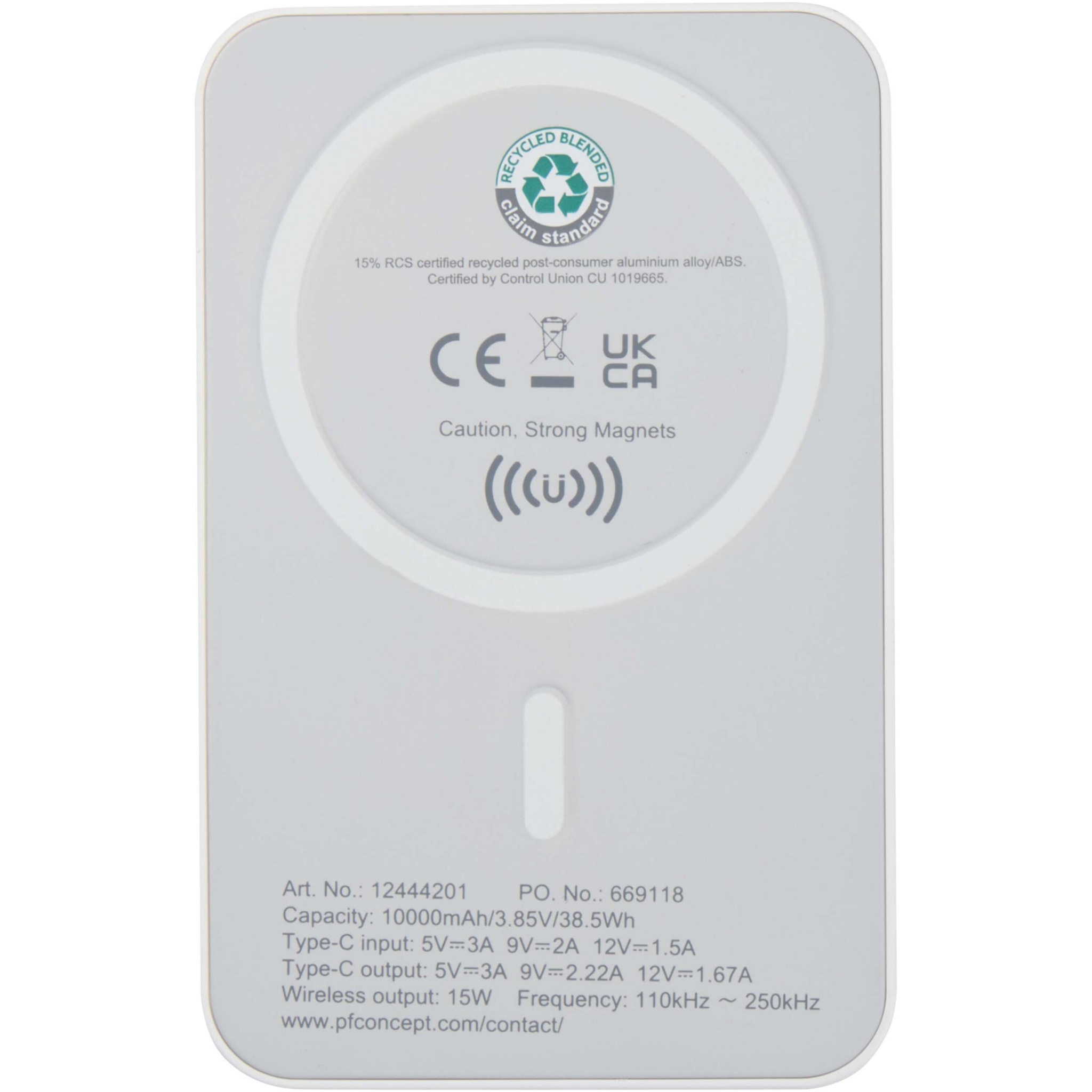 Acrab магнитное беспроводное портативное зарядное устройство емкостью 10 000 мАч, мощностью 15 Вт, с питанием 20 Вт — изготовлено из переработанного пластика, Белый