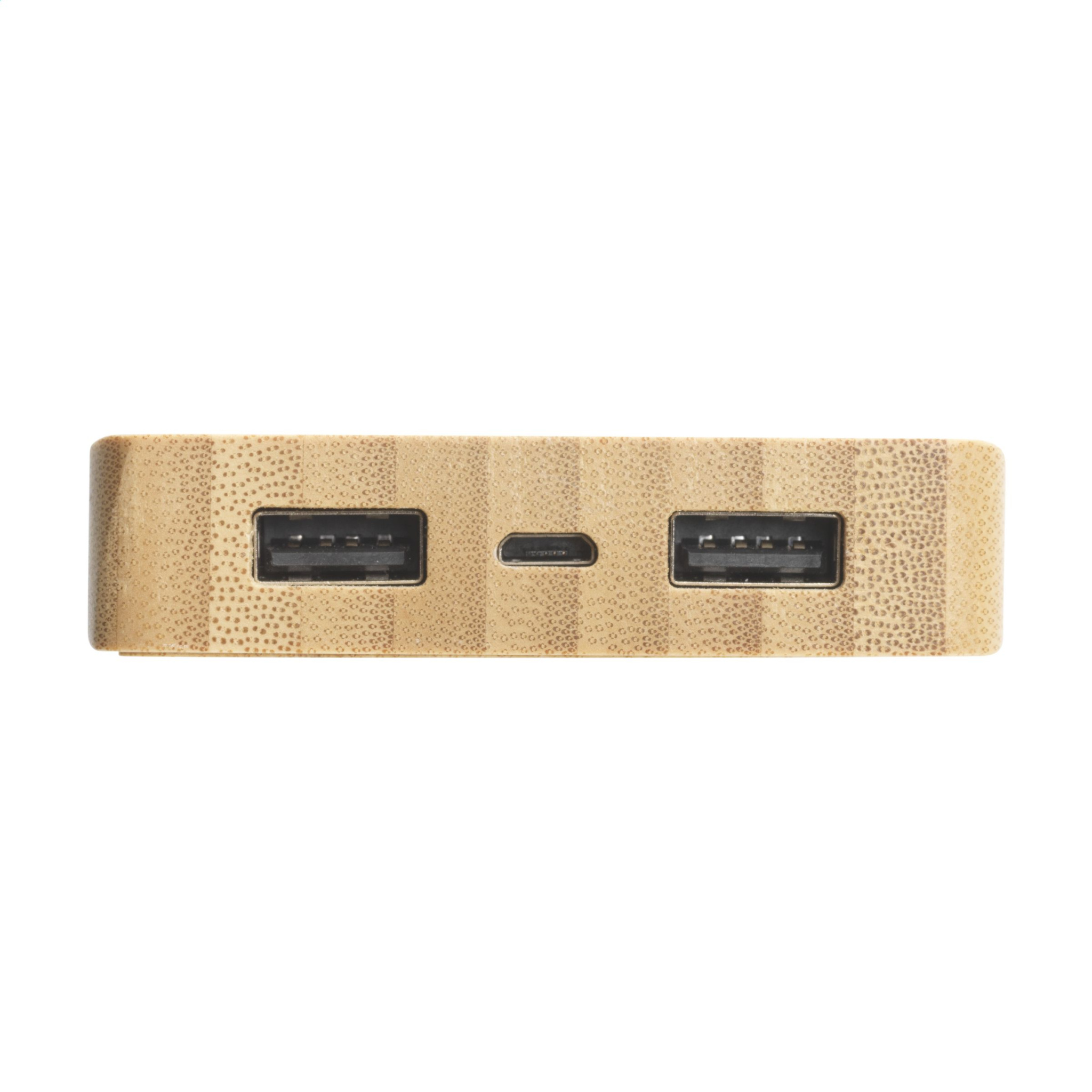 Мощный, высокоемкий внешний аккумулятор и беспроводное зарядное устройство с корпусом из натурального бамбука, сертифицированным FSC 100%. Встроенный литий-полимерный аккумулятор емкостью 8000 мАч можно заряжать от солнечной энергии или от сети через порт USB. Совместим со всеми мобильными устройствами, поддерживающими беспроводную зарядку QI (Android и iPhone новейших поколений). Вход: 5 В/2 А. Выход: 5 В/2 А. В комплект входит кабель для зарядки USB-C и руководство пользователя. Каждый предмет упакован в индивидуальную коробку.
