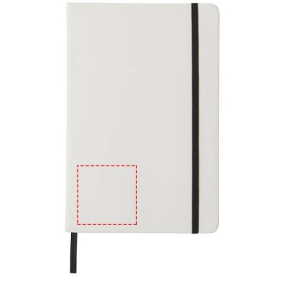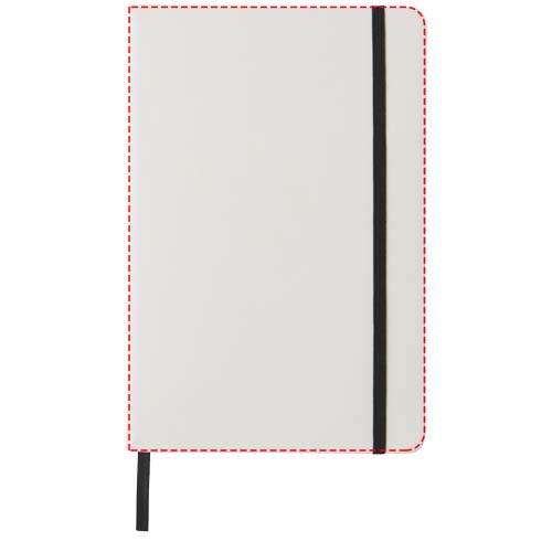 Блокнот формата A5 с цветной эластичной застежкой и ленточкой. Блокнот содержит 80 листов линованной бумаги (60 г/м²). На обложке возможна цифровая печать.