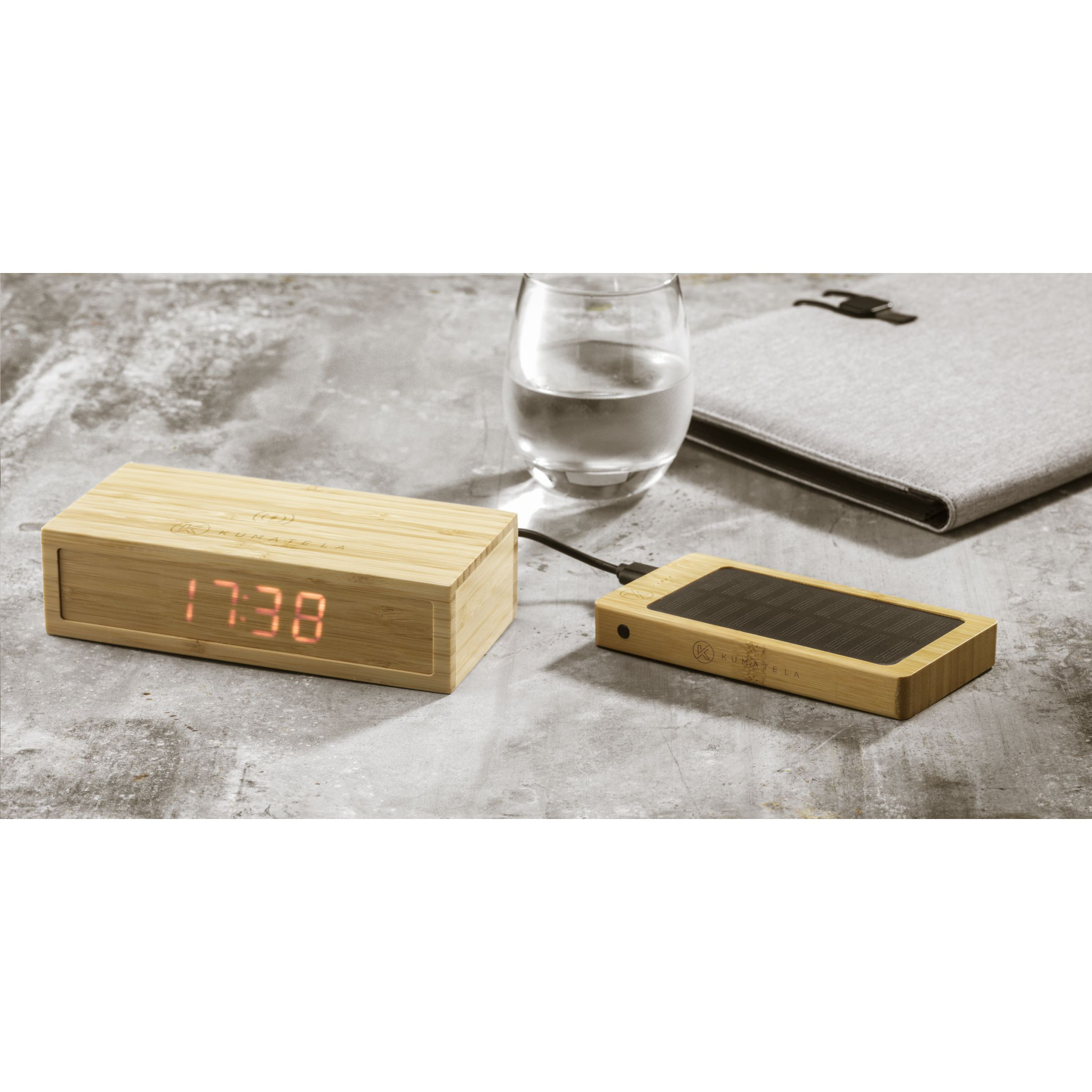 Будильник Bamboo с беспроводным зарядным устройством, бамбук