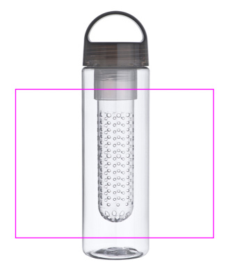 Пластиковая бутылка для питья с заварником для (например) фруктов и емкостью 650 мл. Мы напечатаем ваш логотип на бутылке.