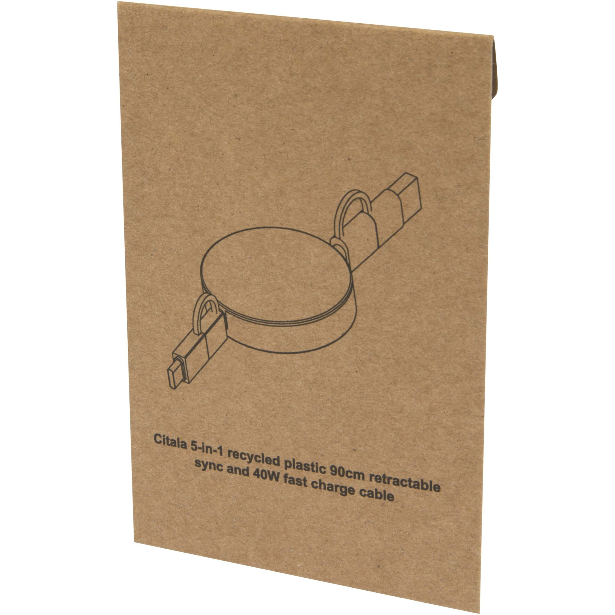 Логотрейд pекламные cувениры картинка: Citala выдвижной кабель 5-в-1 из переработанной пластмассы длиной 90 см для синхронизации данных и быстрой зарядки мощностью 40 Вт