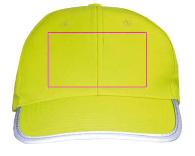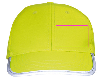 Детская бейсболка из полиэстера со светоотражающей окантовкой на козырьке и застежкой-липучкой. Мы напечатаем ваш логотип в центре лба.