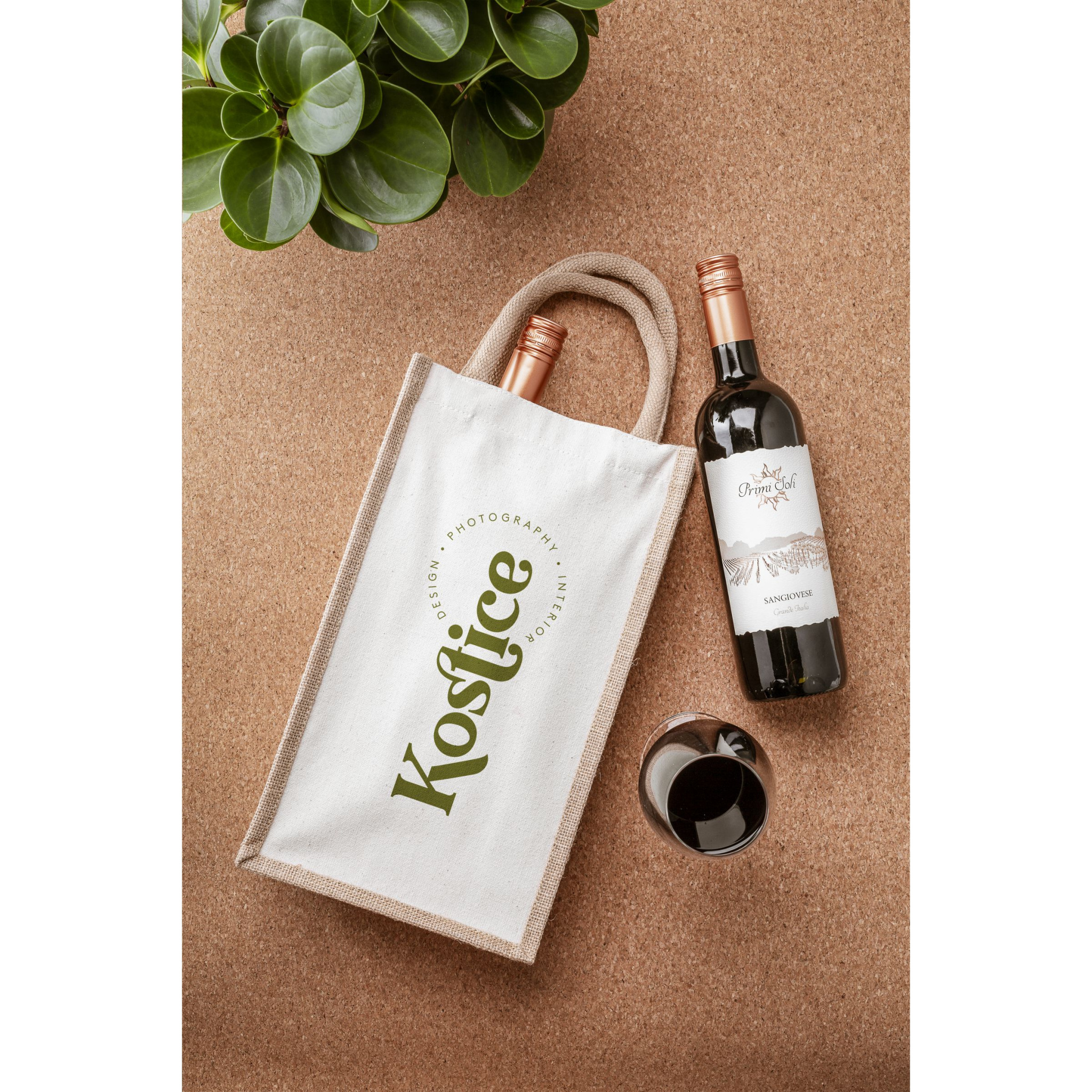 Лого трейд бизнес-подарки фото: Двойная сумка для вина из джутового холста