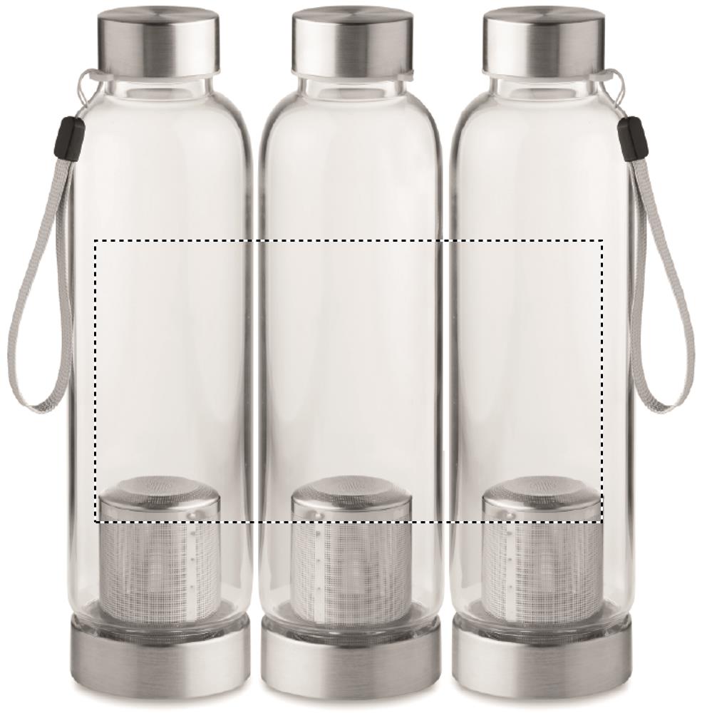 Фляга питьевая из боросиликатного стекла с чайным ситечком в неопреновом чехле. Емкость 500 мл. Не протекает.