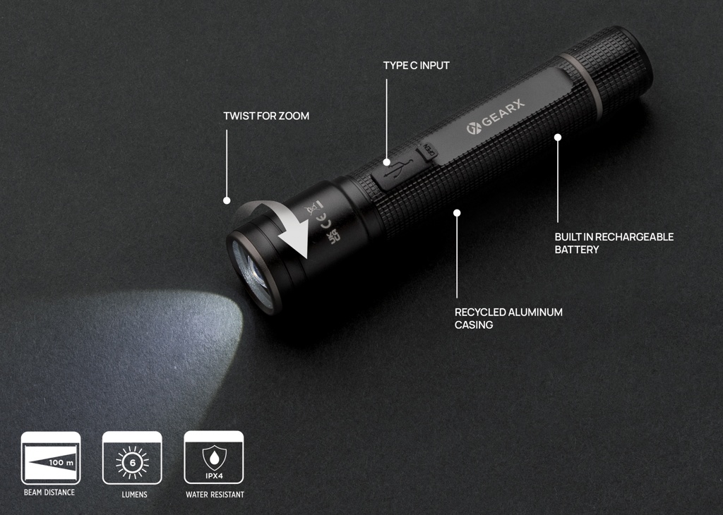 Продукция Все продукты Фонарик Gear X RCS из переработанного алюминия с возможностью зарядки через USB