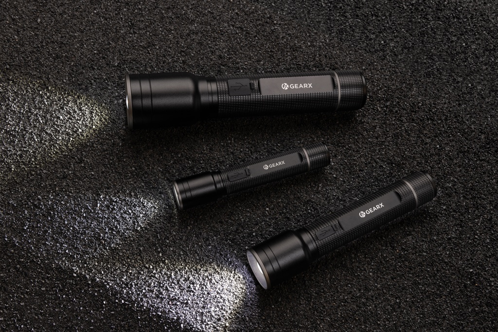 Фонарик Gear X RCS из переработанного алюминия с возможностью зарядки через USB