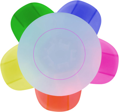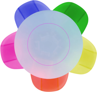 Текстовыделитель с пятью разными цветами и большим рекламным пространством в середине. Мы печатаем ваш логотип в середине текстовыделителя.