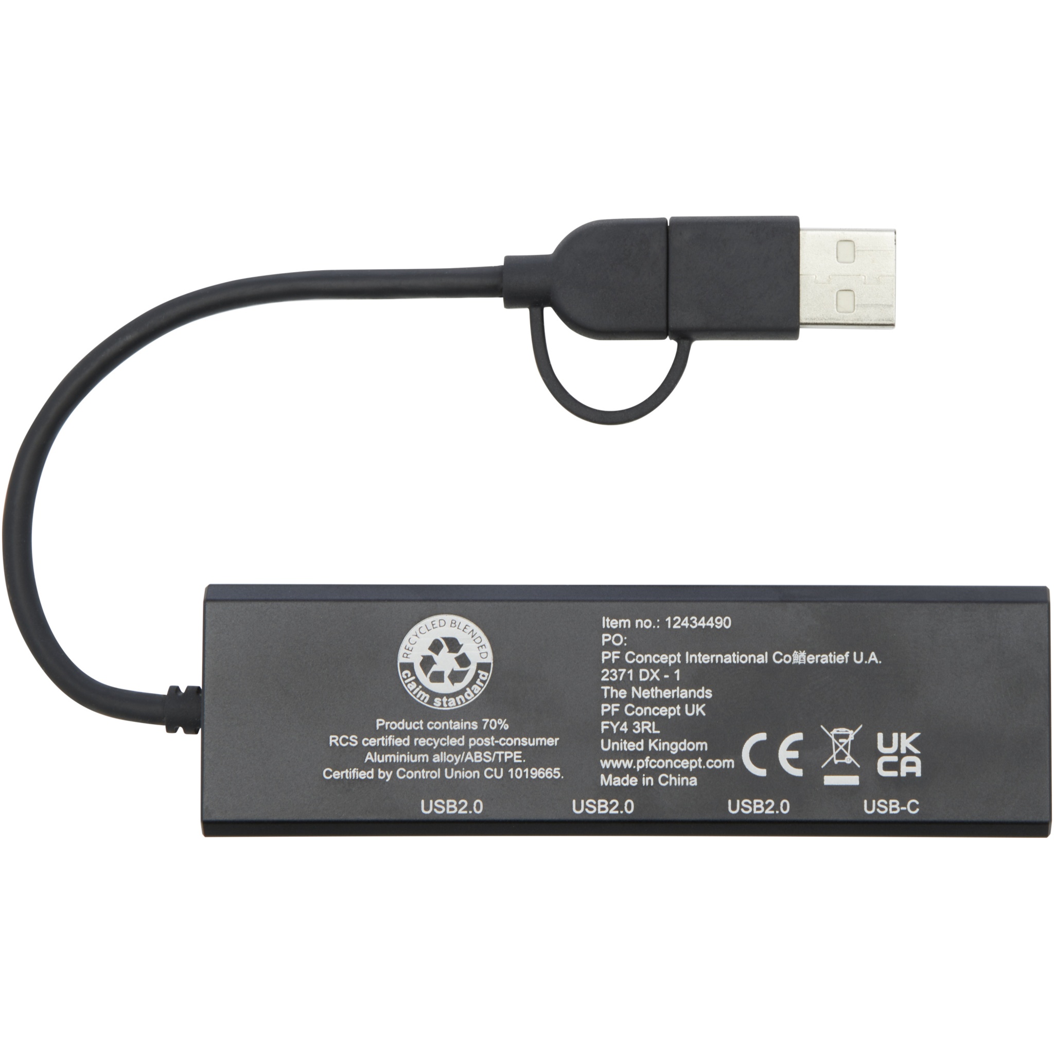 Концентратор USB 2.0 изготовлен из переработанного алюминия, сертифицированного по стандарту RCS, и имеет элегантный прямоугольный корпус из переработанного алюминия. Он оснащен 3 портами USB 2.0 и 1 портом Type-C PD (Power Delivery), который позволяет передавать данные со скоростью до 480 Мбит/с. Входящий в комплект входной адаптер Type-C позволяет использовать это устройство с ноутбуками и компьютерами, оснащенными USB-A и Type-C. Поставляется в коробке из 100 % крафт-бумаги вторичной переработки и красочной наклейкой.