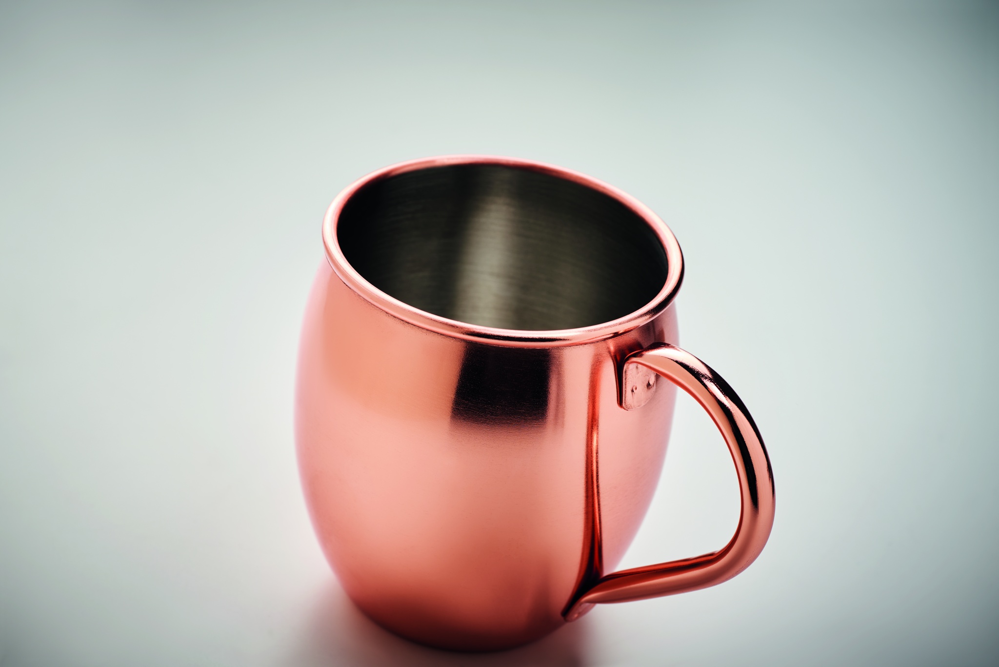 Коктейльная кружка из нержавеющей стали с медной отделкой. Объем 400 мл.