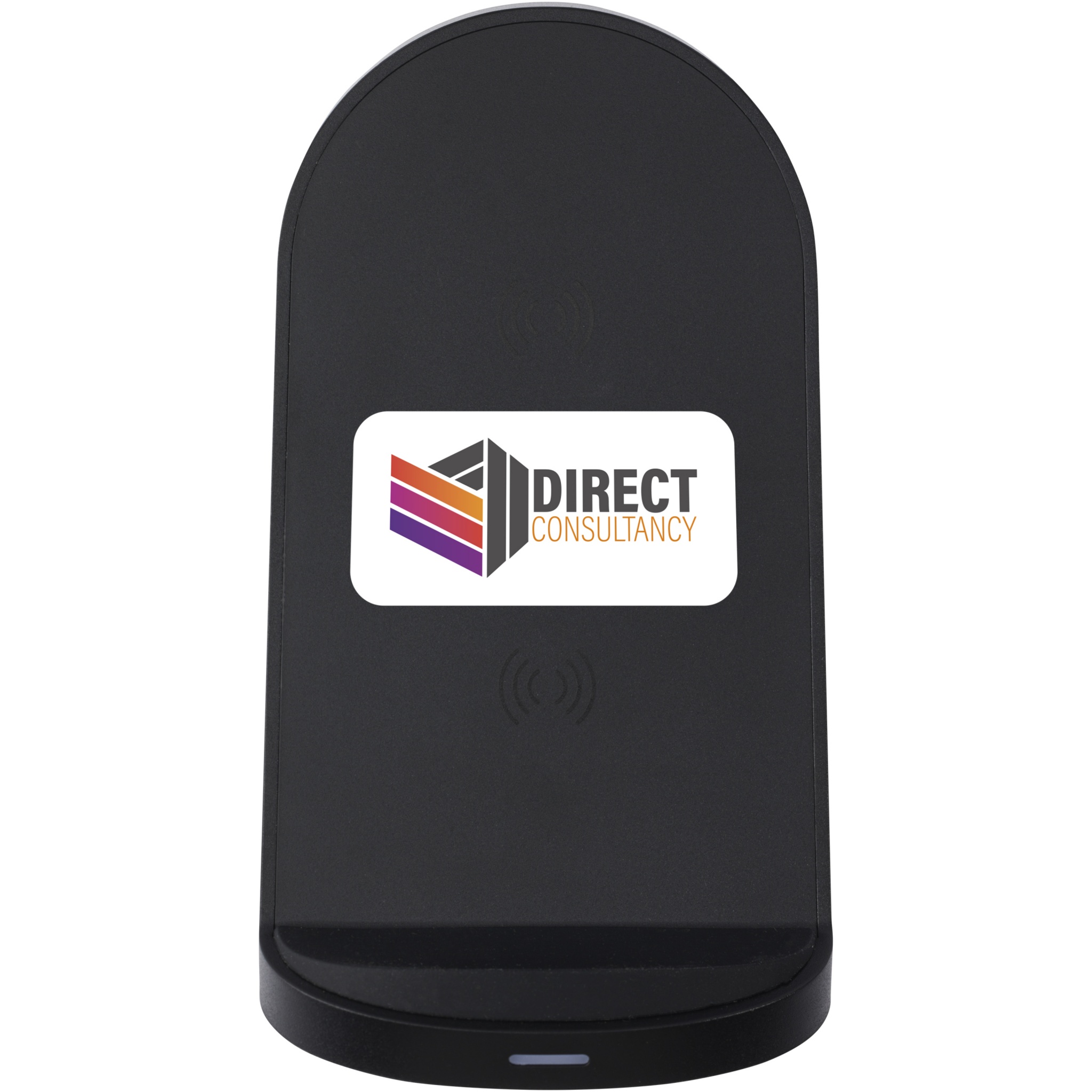 Лого трейд бизнес-подарки фото: Loop подставка для беспроводной зарядки из переработанной пластмассы, сертифицированной по стандарту RCS, с двумя катушками м