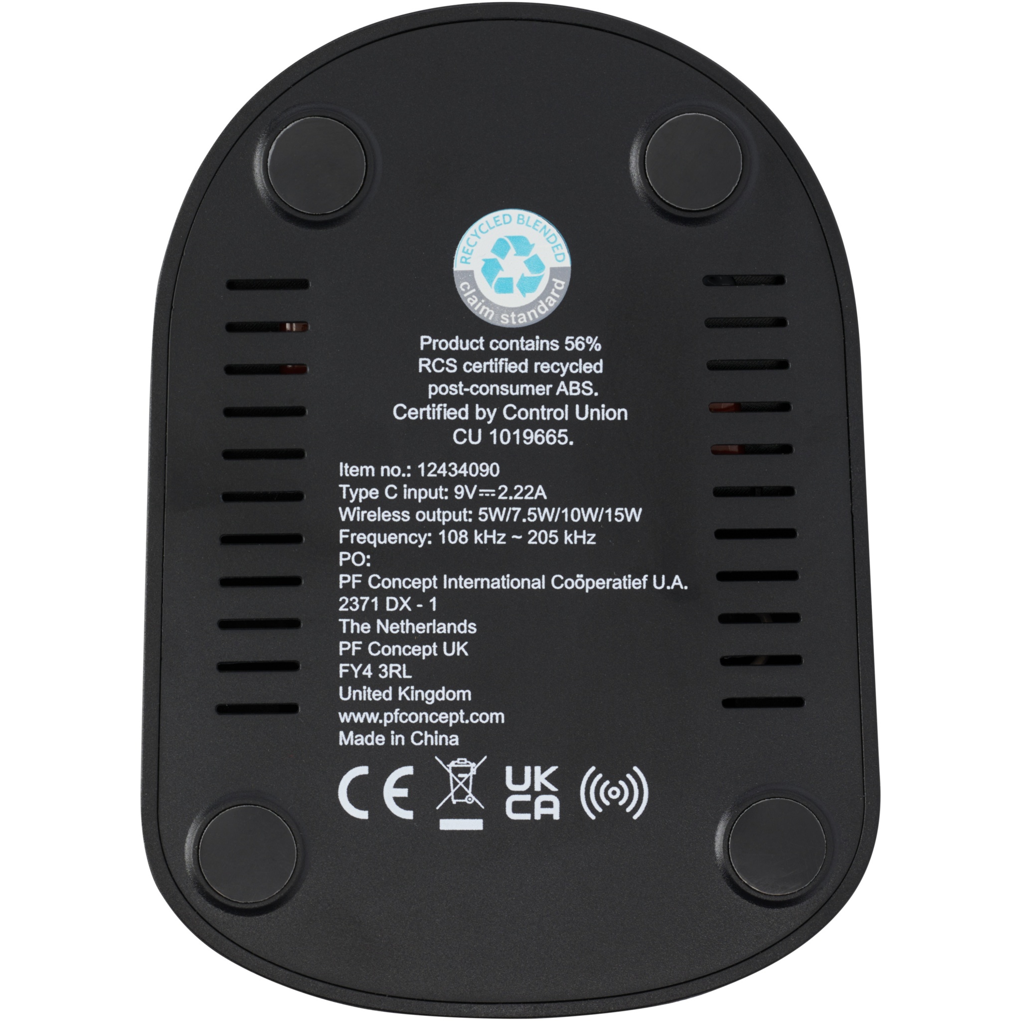 Loop подставка для беспроводной зарядки из переработанной пластмассы, сертифицированной по стандарту RCS, с двумя катушками м, Сплошной черный