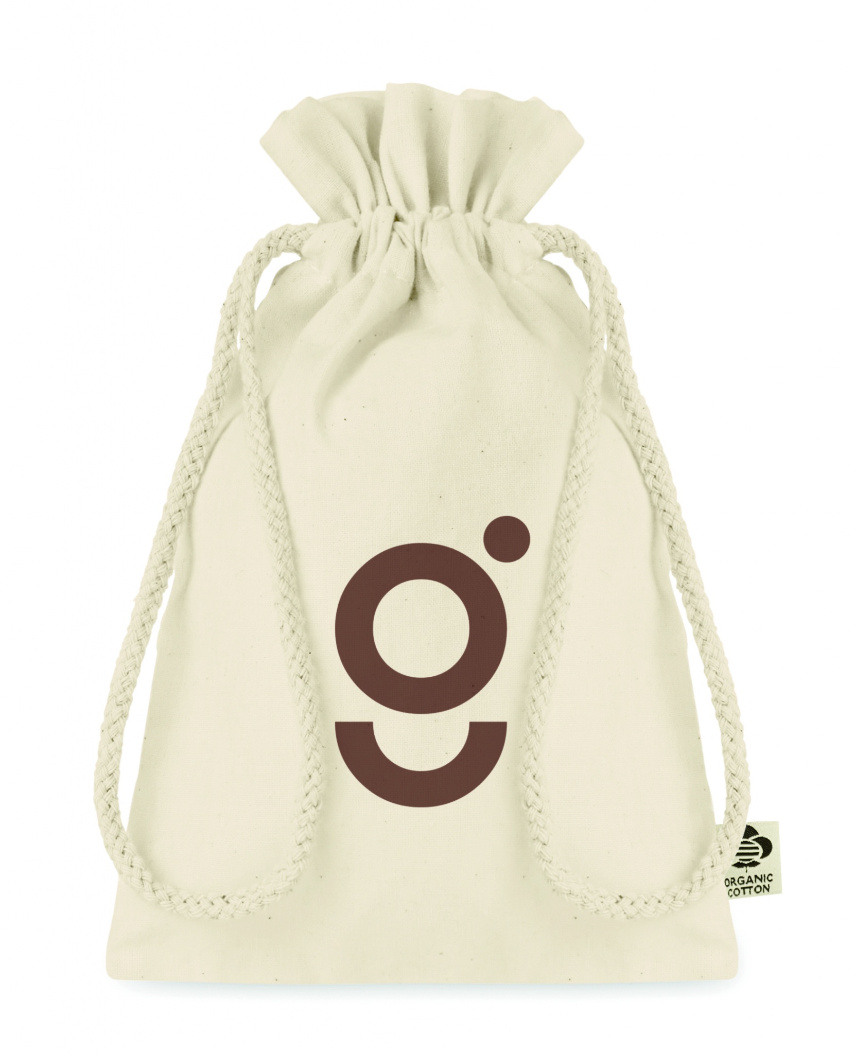 Небольшой подарочный мешок из органического хлопка. Размер около 14x22 см. 105 гр/м².