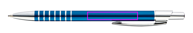 Тонкая металлическая шариковая ручка с синим стержнем и гравированной зоной захвата. Мы гравируем ваш логотип под зажимом.