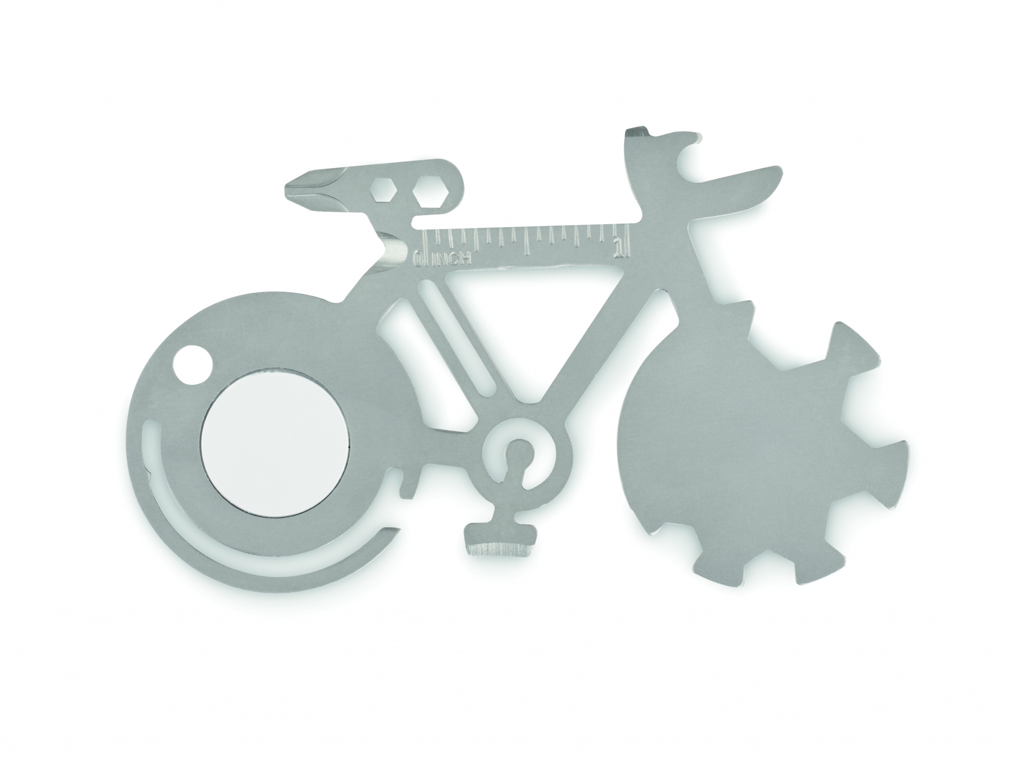 Мультиинструмент 11-в-1 из нержавеющей стали в форме велосипеда. Открывалка для бутылок, нож, линейка или крестовая отвертка.