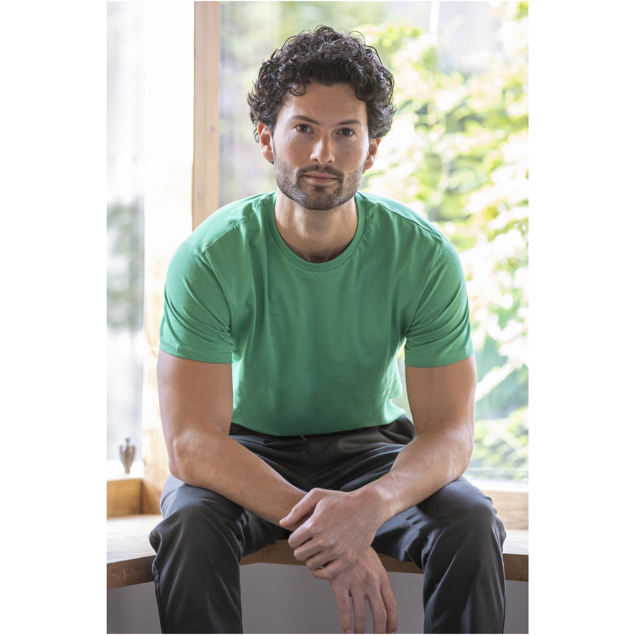 Мужская футболка Heros с коротким рукавом идеально подходит для любых мероприятий. Короткие рукава и вырез горловины обеспечивают универсальный и обычный крой, что делает ее подходящей для различных видов деятельности. Изготовленная из хлопка плотностью 150 г/м2, она легка и удобна в носке. Кроме того, хлопковый материал мягкий на ощупь и идеально подходит для высококачественного брендинга. Благодаря внутреннему шейному ярлыку, который легко снимается в два сегмента, дизайн оставляет место для индивидуального внутреннего брендинга, сохраняя при этом информацию о размере.