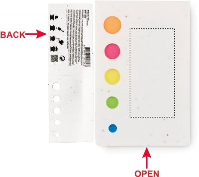 Набор стикеров в 5 разных цветах из бумаги содержащей семена белой ромашки. Поместите фрагменты бумаги в почву, чтобы вырастить цветок