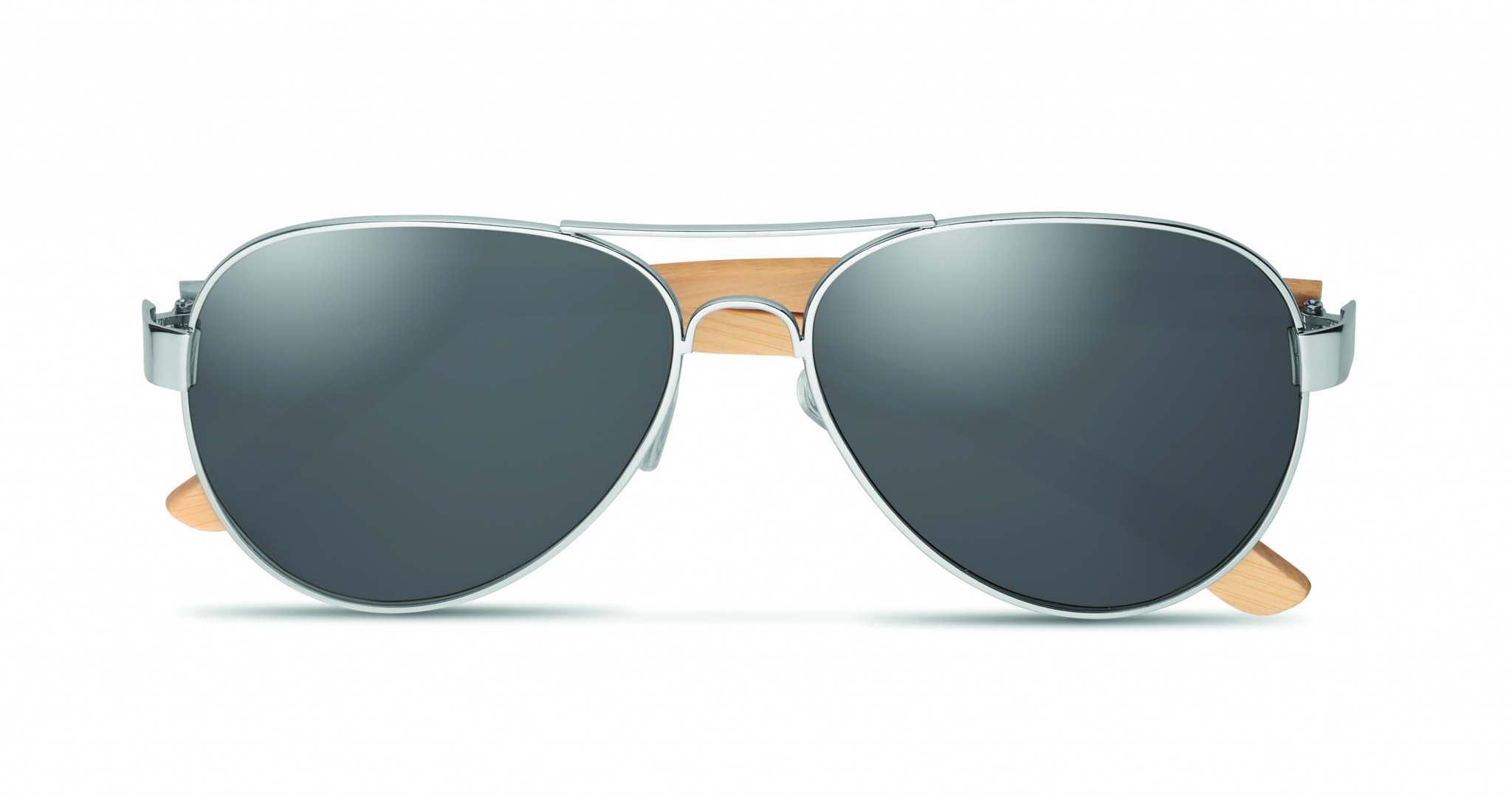 Солнцезащитные очки с бамбуковыми дужками и цветными зеркальными линзами в чехле из микрофибры. Защита UV400.