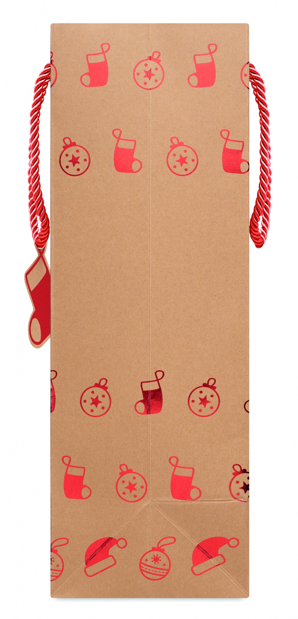 Элегантный подарочный пакет из крафт-бумаги с сезонным рисунком. Подарочная бирка в комплекте. 250 гр/м².
