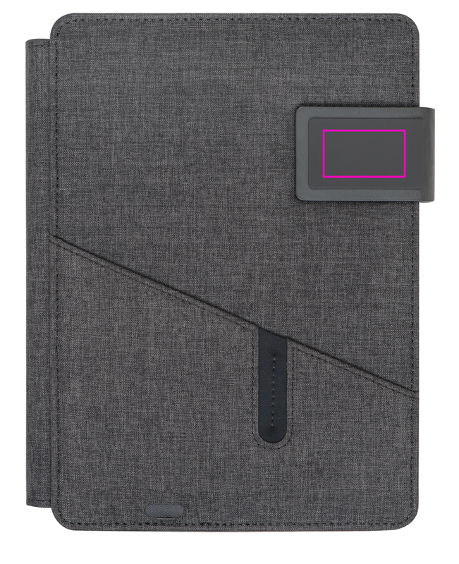 Папка-аккумулятор А5 со встроенным аккумулятором (4000 мАч), блокнотом (128 страниц) и накладным карманом спереди. Вход: 5 В/1 А - Выход: 5 В/2,1 А. Мы напечатаем ваш логотип спереди.