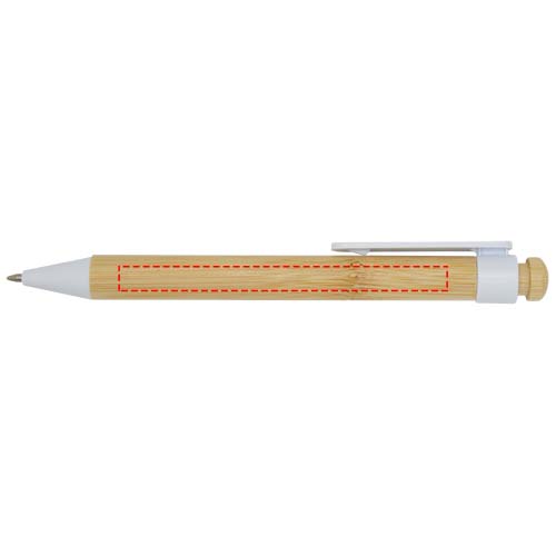 Шариковая ручка с зажимом и наконечником из переработанного пластика, а кнопка и корпус изготовлены из бамбука. Цвет чернил: черный. Длина непрерывной линии: 1000 метров. Размер пера: 1,0 мм.