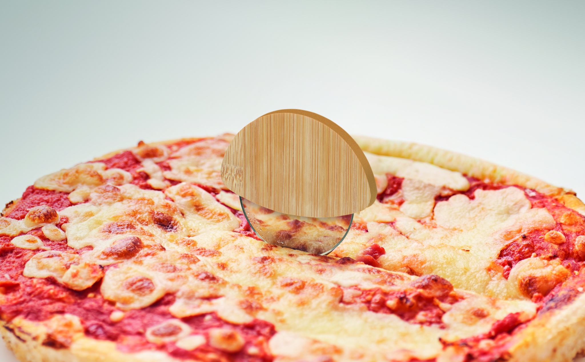 Round bamboo pizza cutter