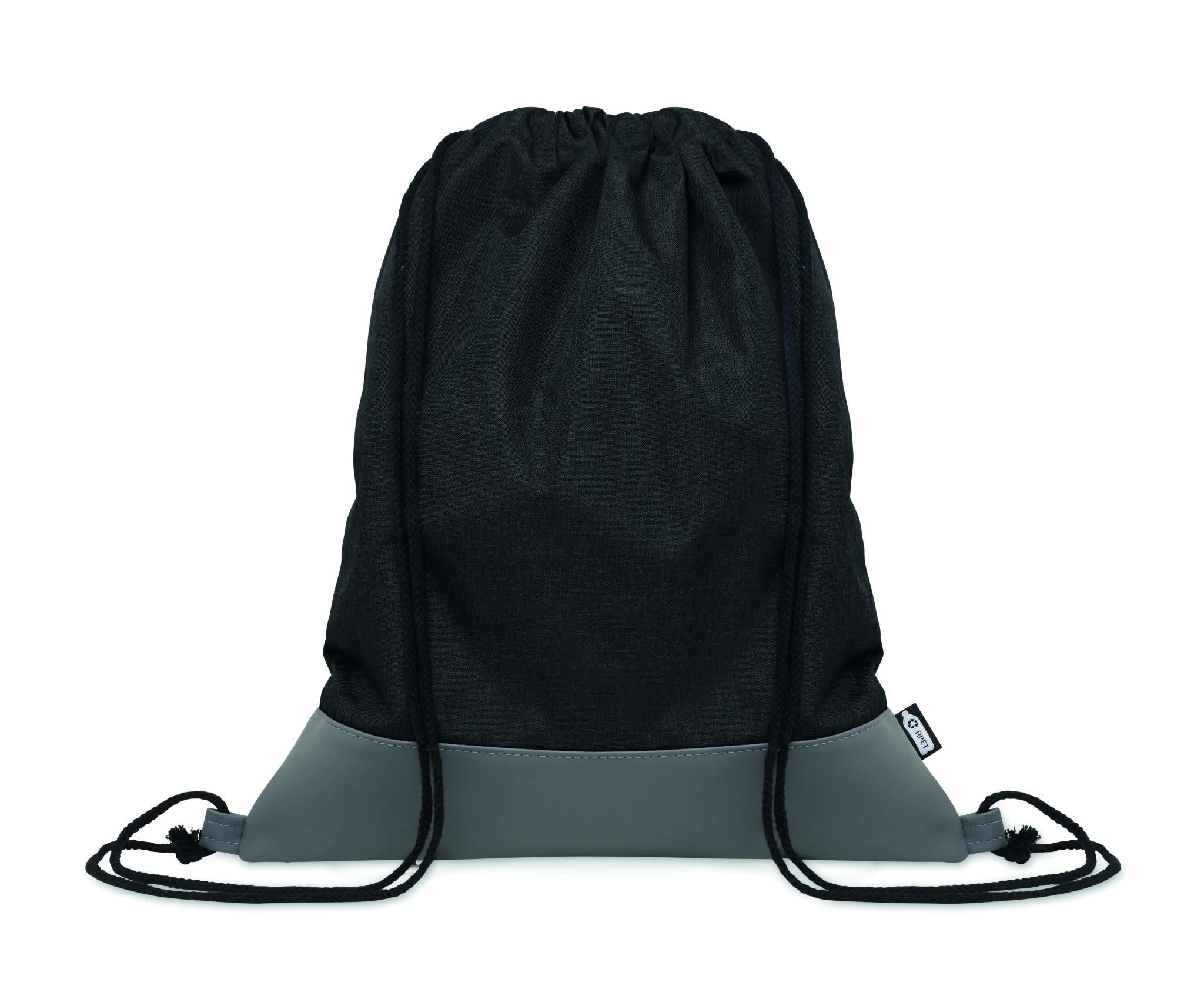 Drawstring bag in 2 tone 300D RPET polyester with soft PU detail and polycotton cord.