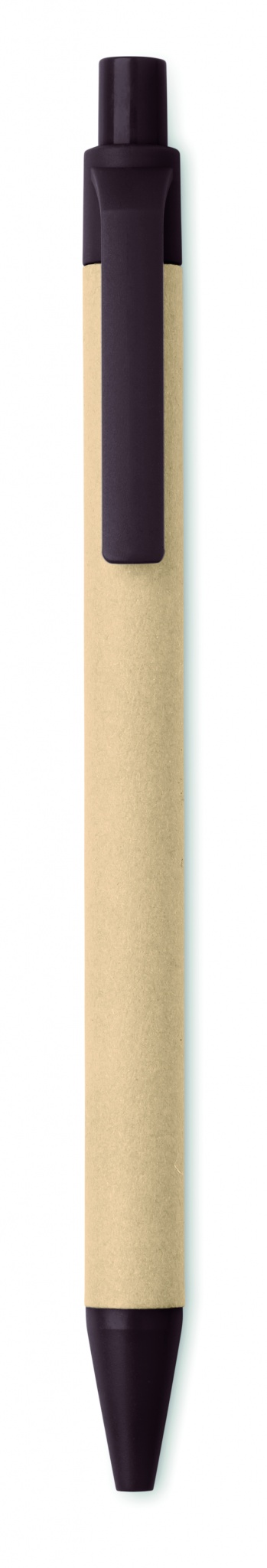 Ручка шариковая в корпусе из картона. Фурнитура является сплавом из 40% кофейной кожуры и 60% пластика АБС.