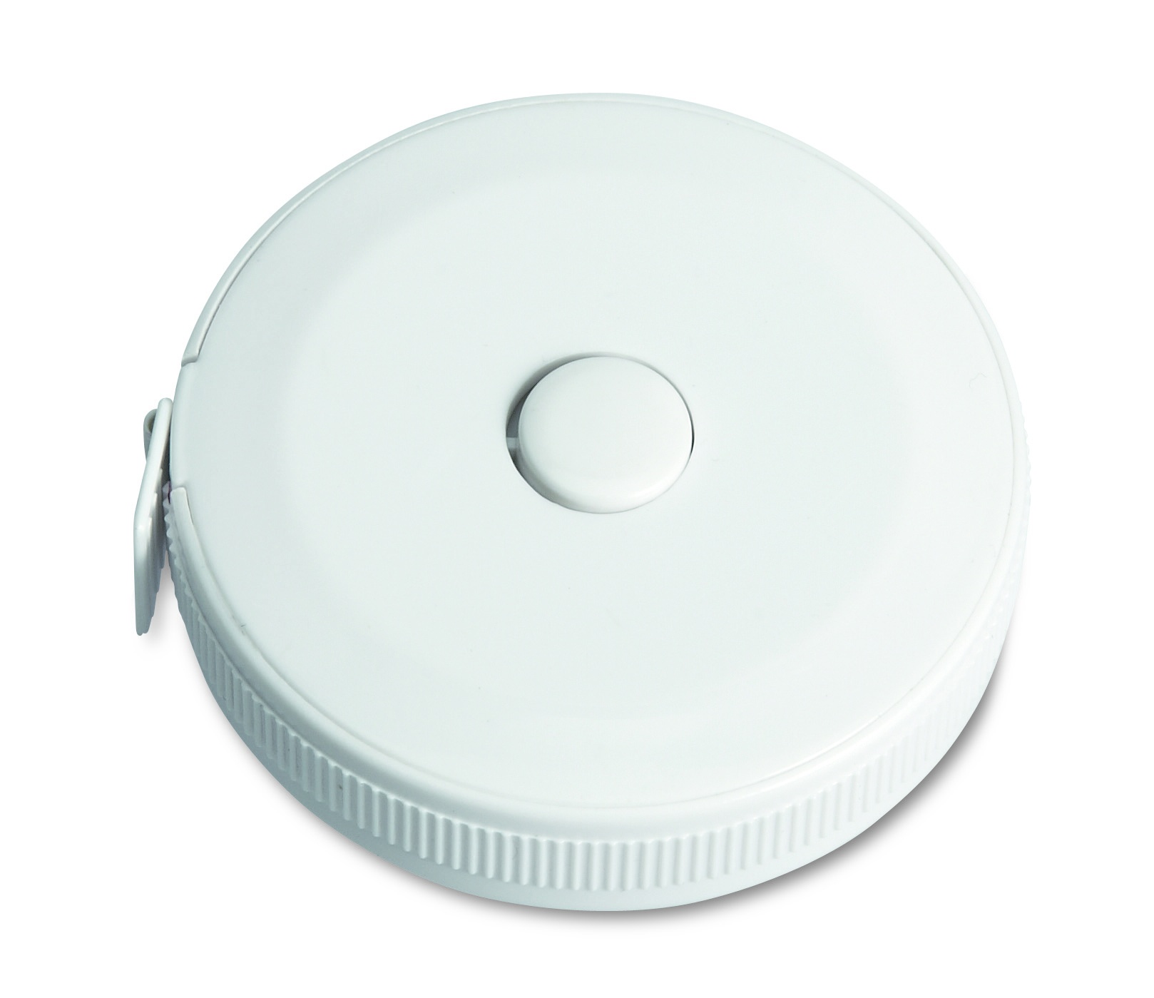 1м мягкая рулетка с пластиковым корпусом круглой формы. Для сматывания необходимо удерживать кнопку.
