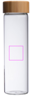 Стеклянная бутылка с бамбуковой крышкой и емкостью 500 мл. На крышке будет выгравирован ваш логотип.