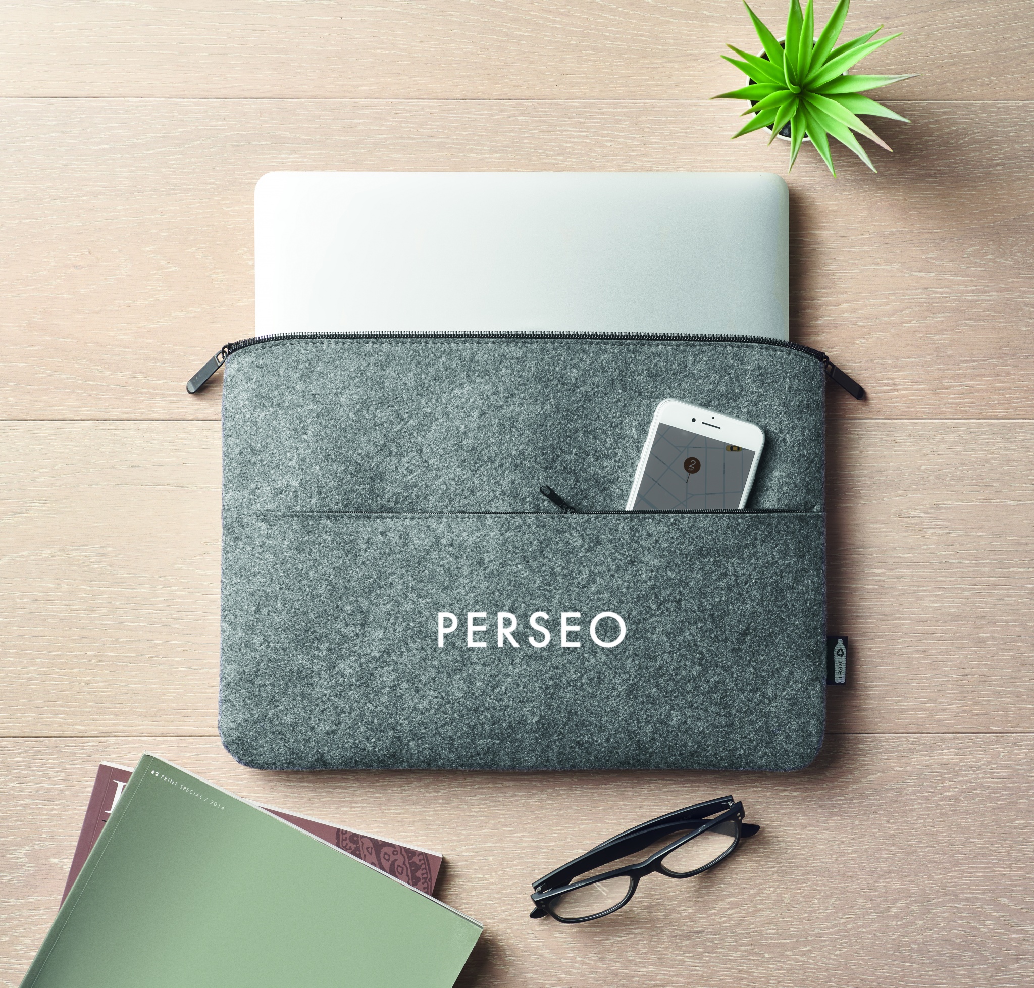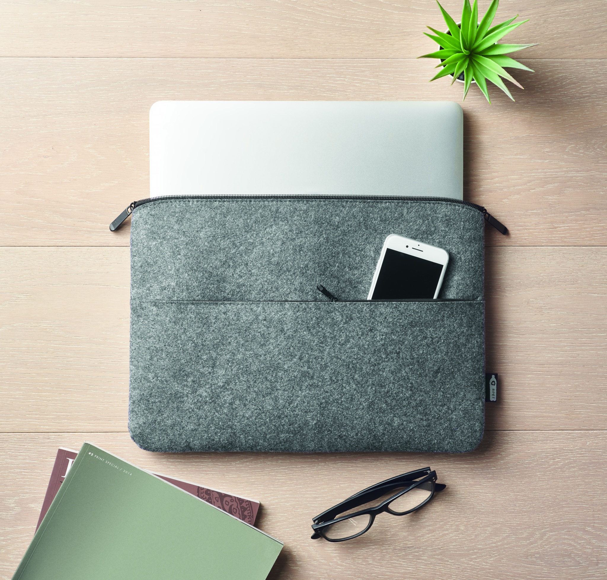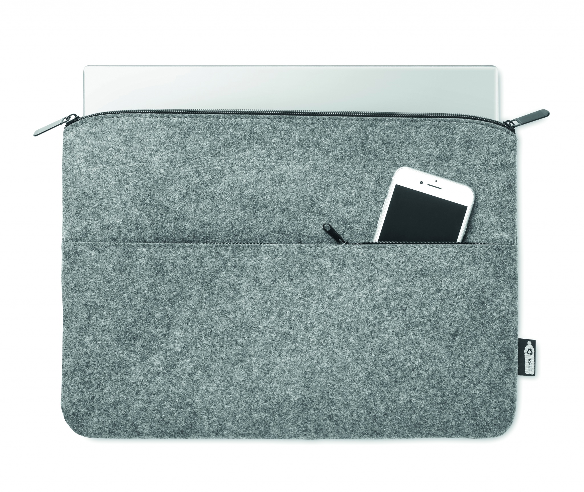 Сумка для ноутбука 14 дюймов из переработанного фетра RPET с передним карманом на молнии.