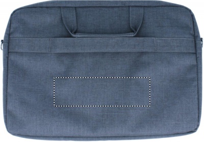 Сумка для ноутбука из полиэстера со съемным ремнем для крепления на чемодане. Имеет наружный карман на молнии, а также отделения для письменных принадлежностей.