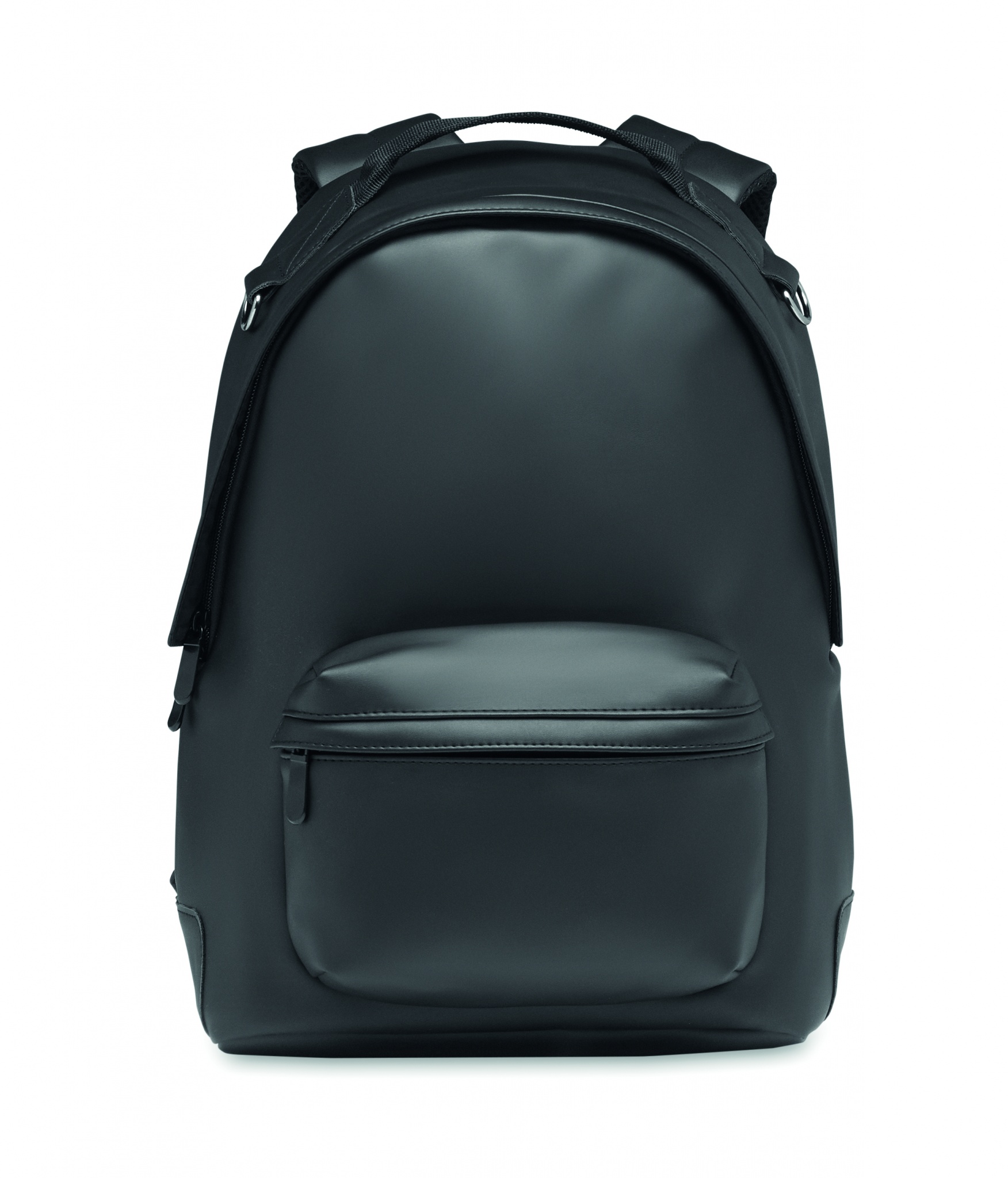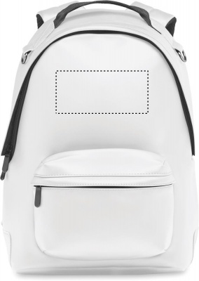 15 tums laptopryggsäck i mjuk PU med vadderad rygg och förstärkt botten. Ficka med dragkedja framtill. Fodret är 210D RPET.