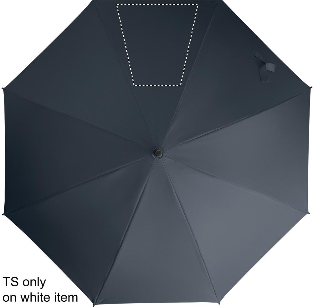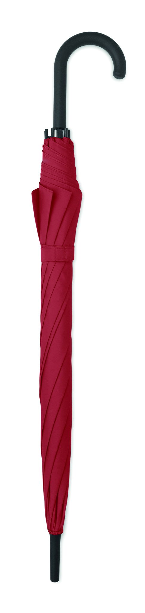 23 tum automatiskt öppningsbart, stormsäkert paraply med skaft i glasfiber och paneler i 190T pongee-tyg. Spetsar och topp i plast. Böjt handtag i gummerad PP-plast. Manuell stängning.
