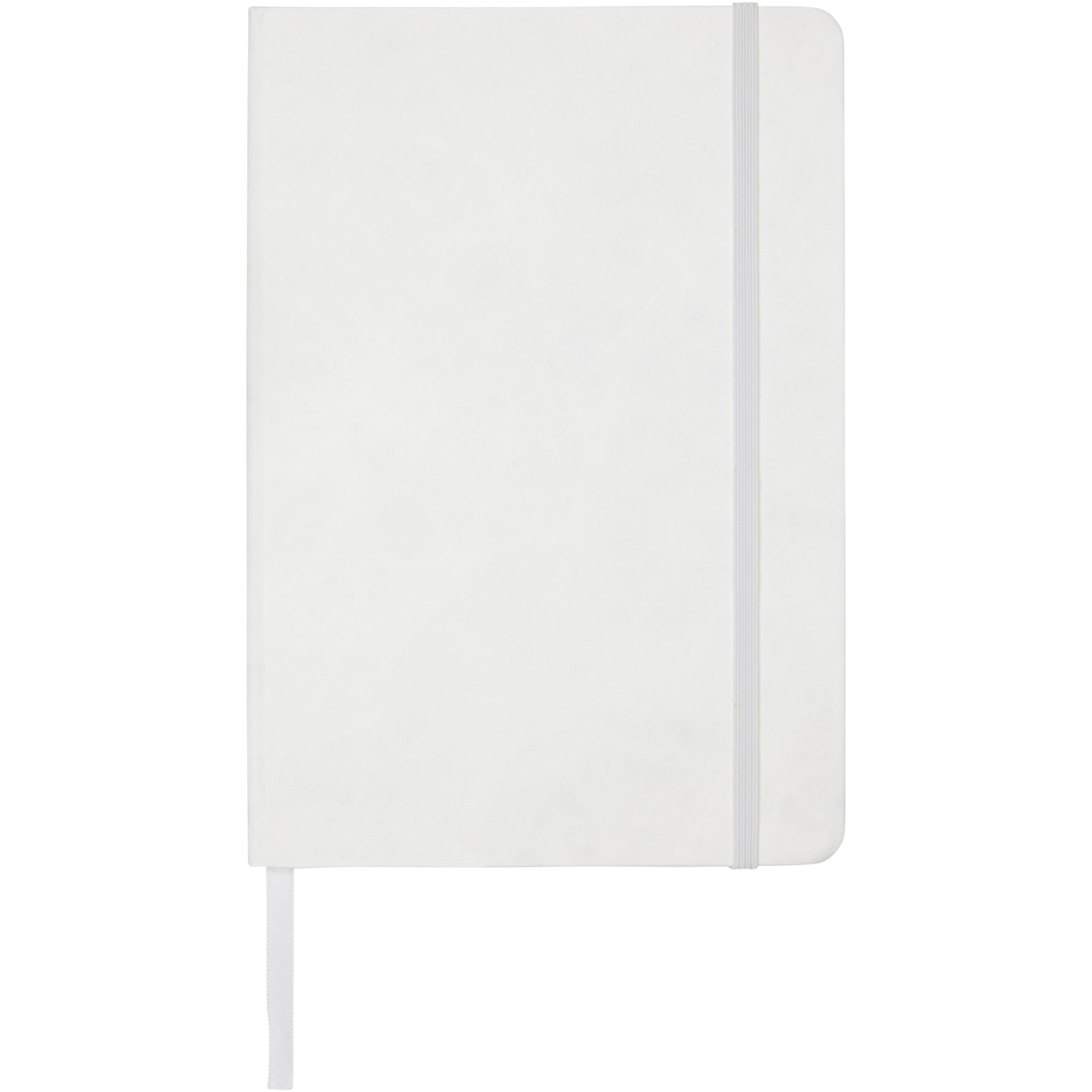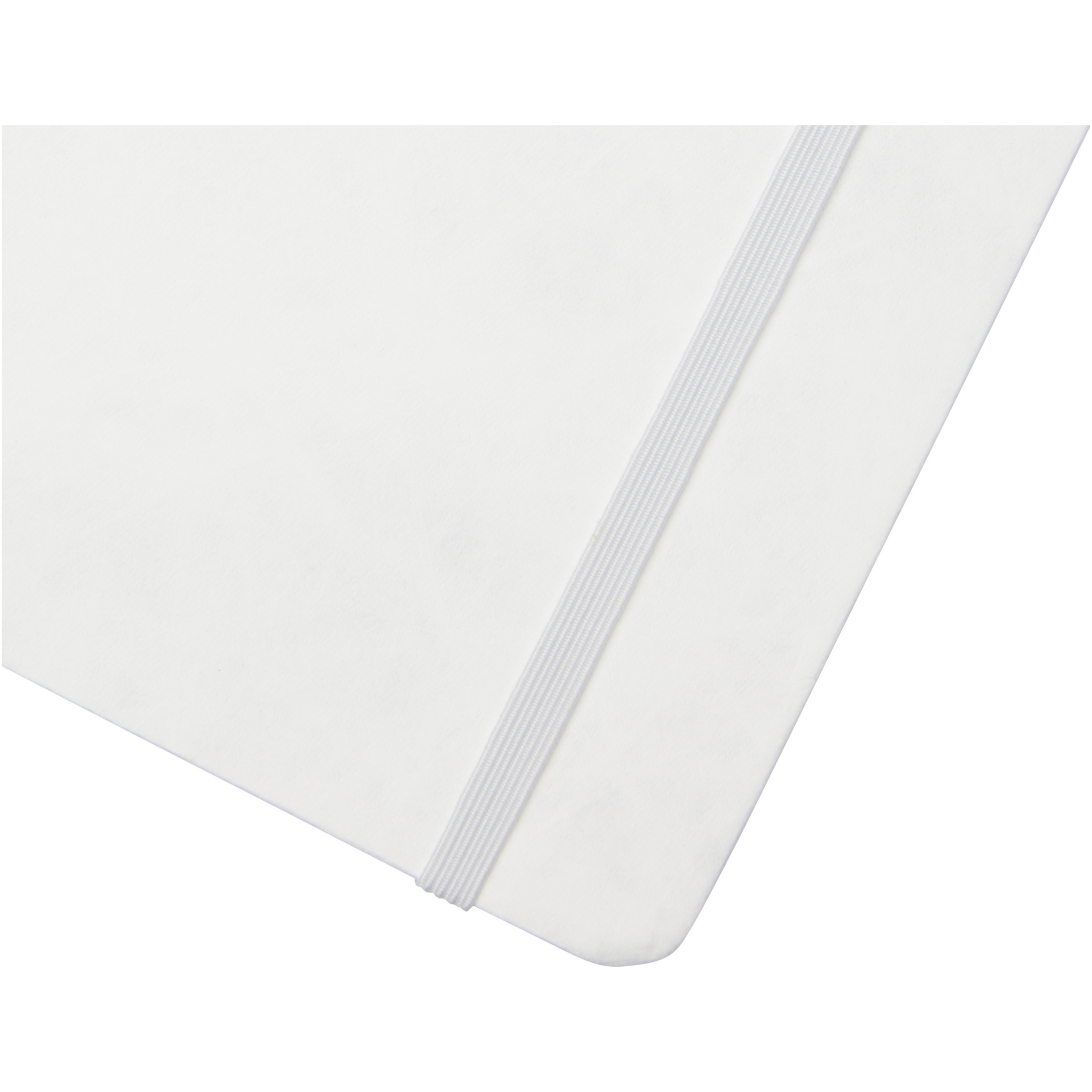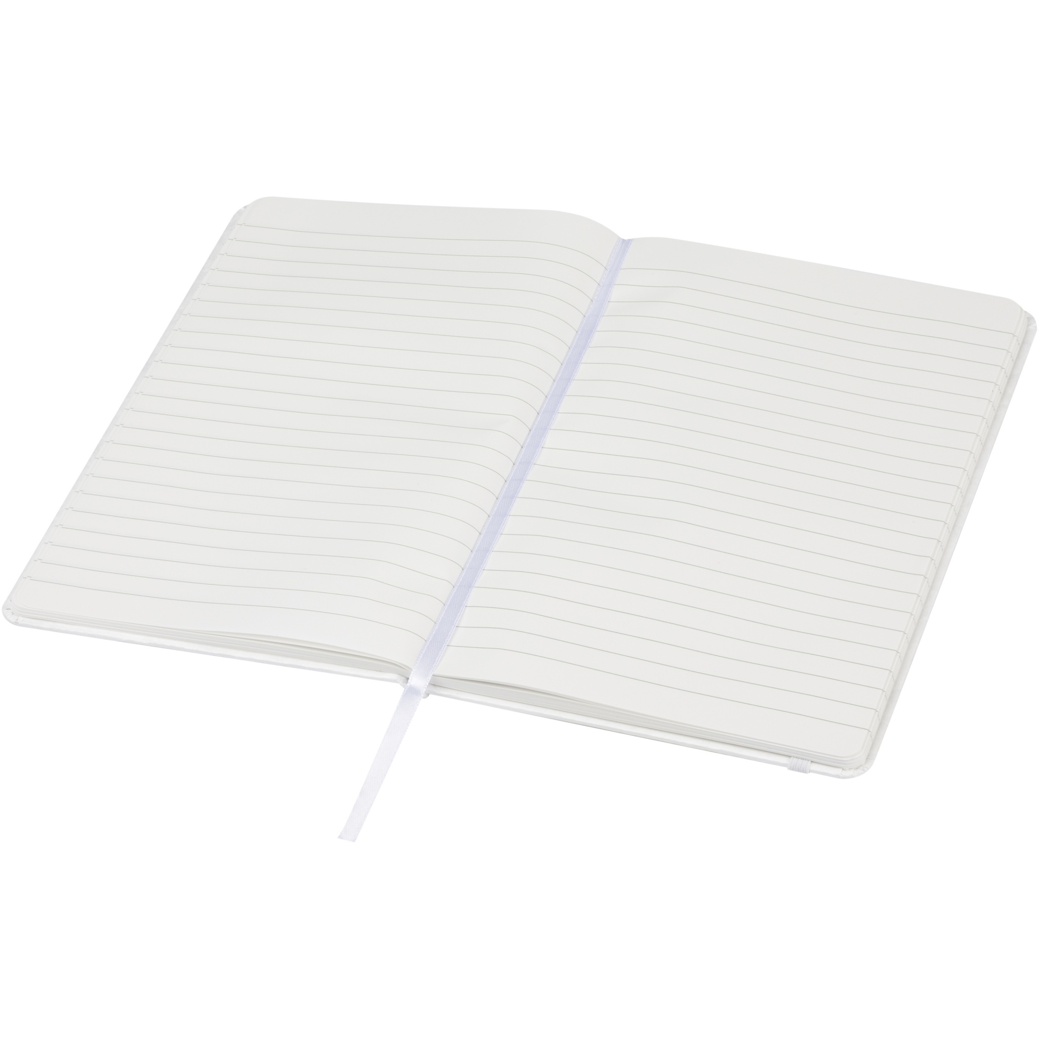 A5 storlek rivtålig anteckningsbok med inre sidor gjorda av sten. Mineralpapper är 100 % trädfritt och produktionsprocessen använder mindre energi jämfört med återvunnet eller nytt pappersmassapapper. Den är vattenresistent så vätskor som spills lätt kan torkas av. Har en färgmatchande bandmarkör och elastiskt band och 60 ark 120 g/m² linjerat mineralpapper. Inpackad i ett kartonghölje.