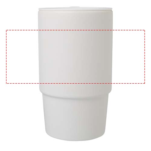 Keramikmugg med stort handtag för enkel transport och spillsäkert plastlock som är praktiskt när du är på språng. Utsidan har en stilig matt finish och flaskan är maskindisksäker för alla tryckmetoder. Levereras i en presentförpackning av återvunnen kartong. Volymkapacitet: 450 ml.
