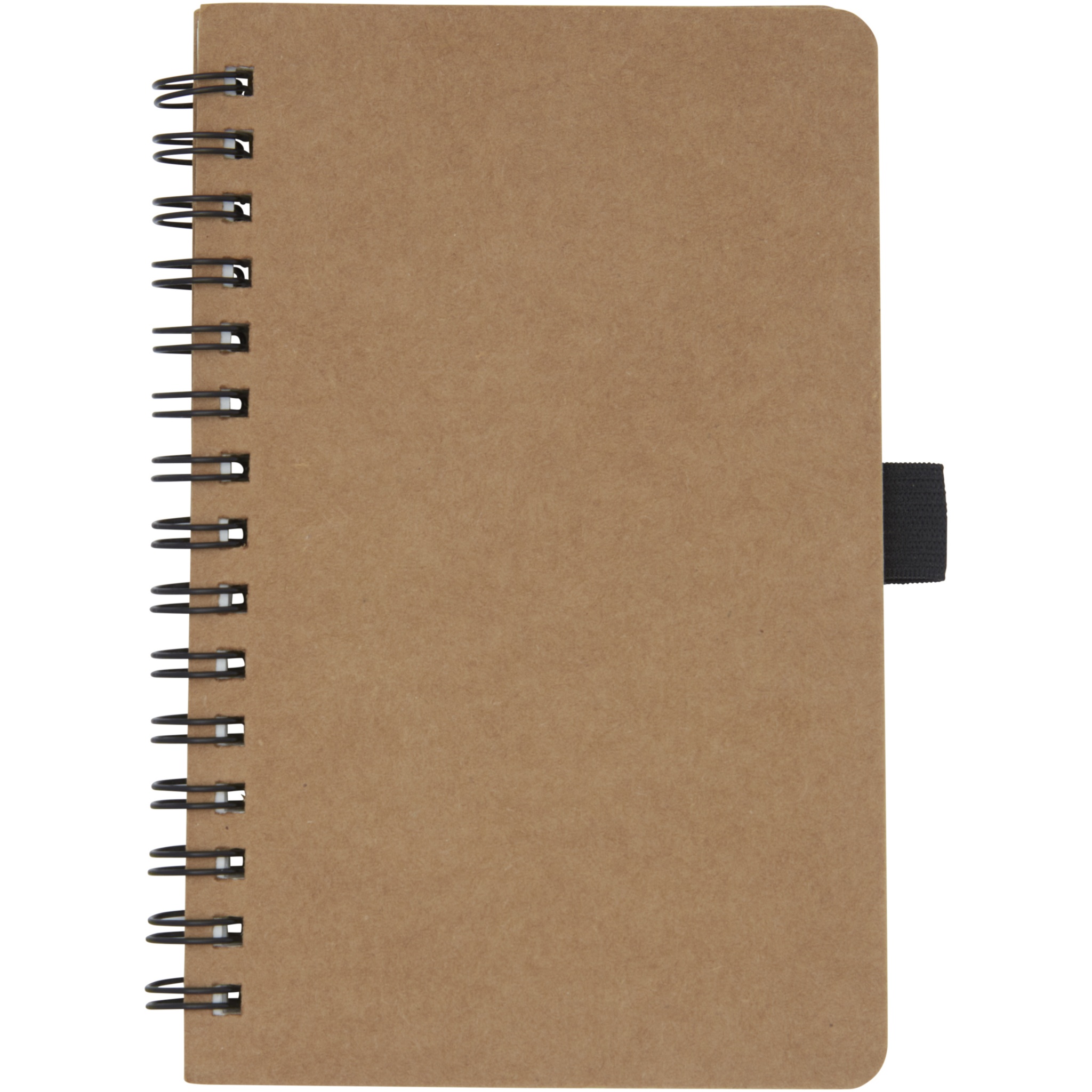 A6 storlek tråd-o återvunnen kartongskydd anteckningsbok med pennslinga. Innehåller 70 ark 60 g/m² fodrade inre sidor gjorda av sten. Mineralpapper är 100 % trädfritt och produktionsprocessen använder mindre energi jämfört med återvunnet eller nytt pappersmassapapper. Pappret är vatten- och slitagetåligt och har en naturvit färg (ingen blekning inblandad).
