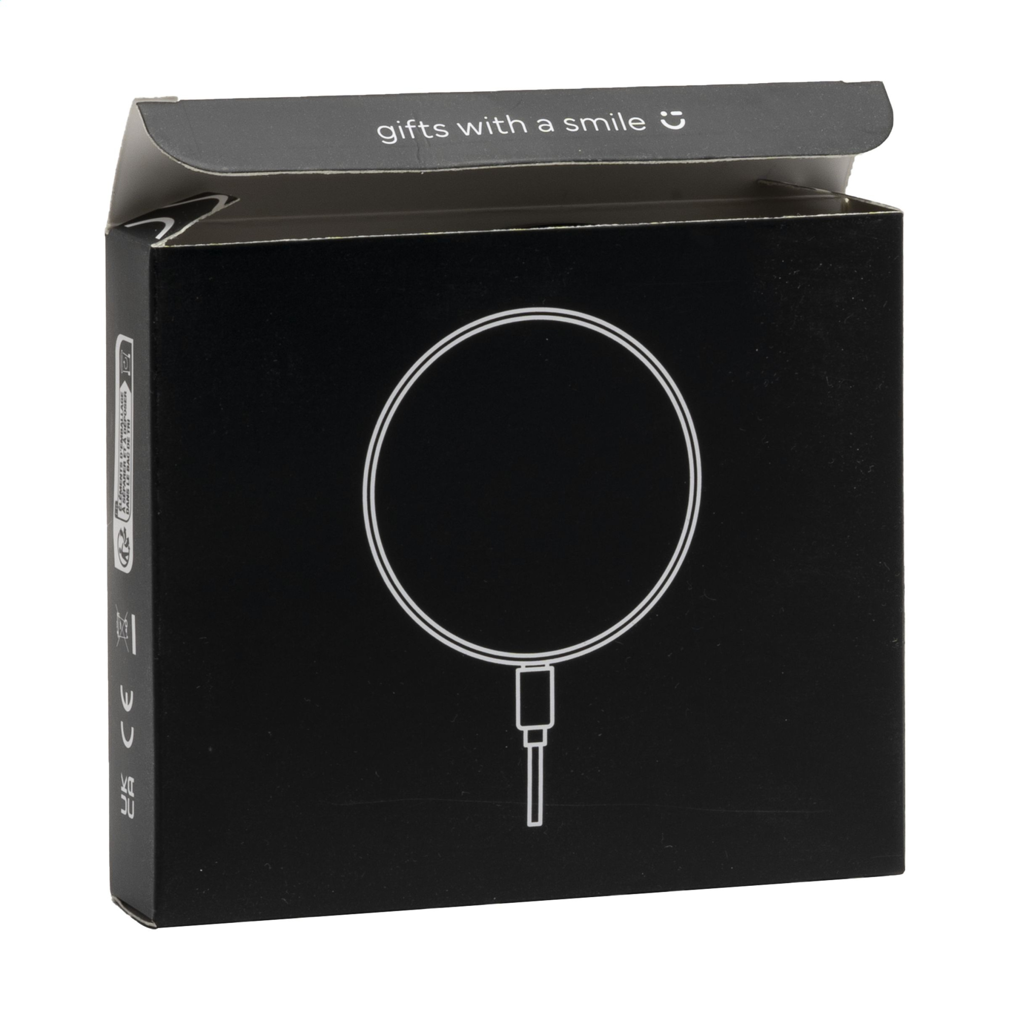 10W trådlös laddare. Höljet är tillverkat av återvunnen ABS-plast. Kompatibel med alla mobila enheter som stöder trådlös QI-laddning (senaste generationens Android och iPhone 8 och högre). Ingång: 9V/1,1A. Trådlös utgång: 9V/1.1A 10W. Inkluderar en kabel (USB-A och typ C) och bruksanvisning. Denna produkt och dess tillbehör är PVC-fria. RCS-certifierad. Totalt återvunnet material: 20 %. Varje artikel är individuellt förpackad.