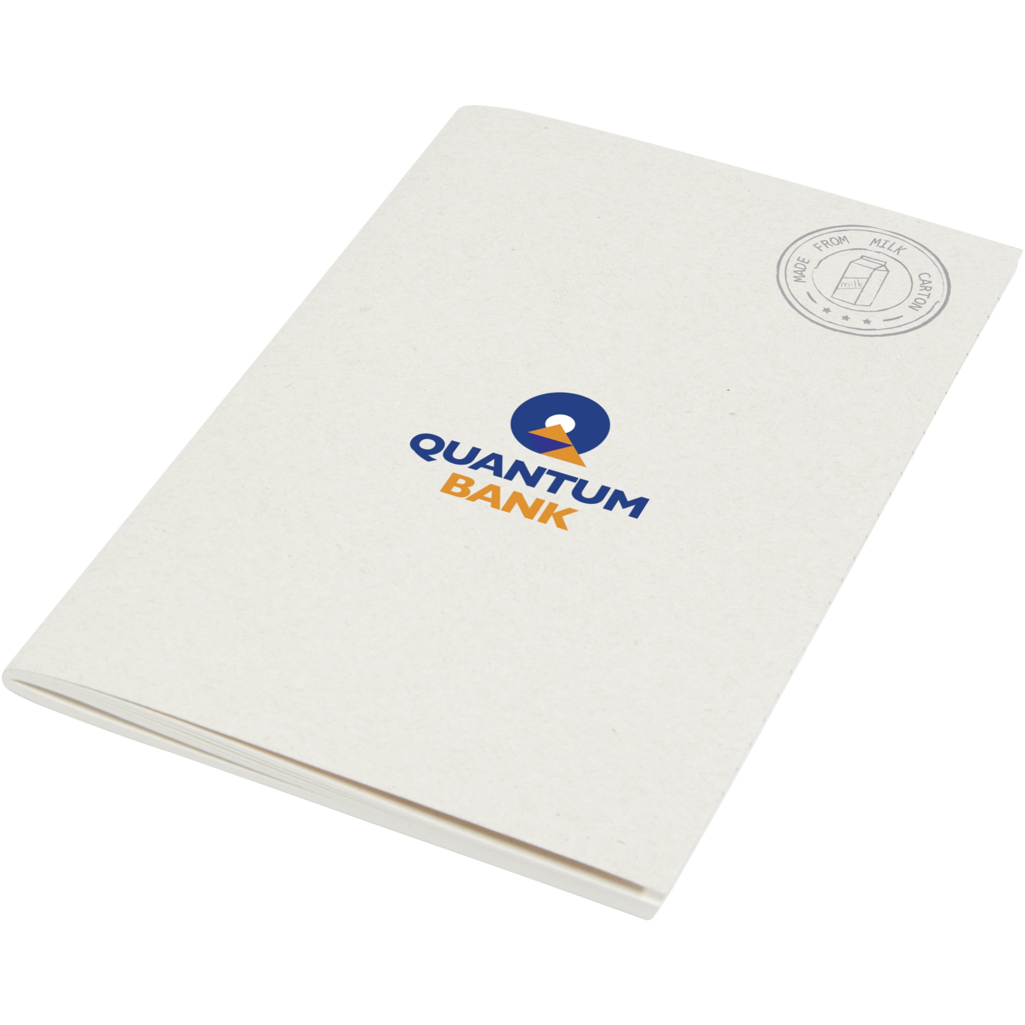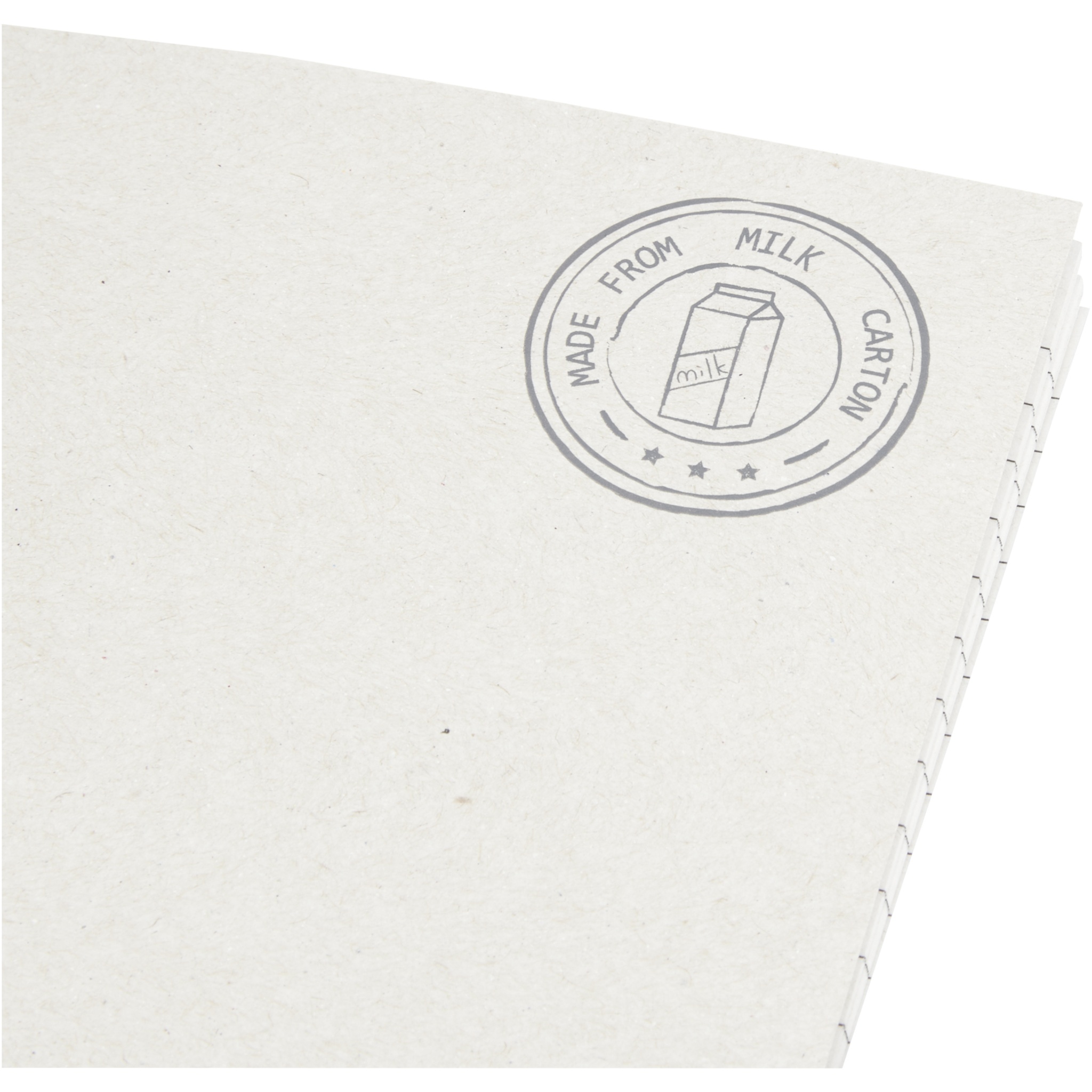 En cahier anteckningsbok i A5-format med 30 80 g/m² fodrade ark, tillverkad av återvunna mjölkkartonger (upp till 70 %). Använda mjölkkartonger samlas in, sorteras, bearbetas och förvandlas till papper, vilket verkligen förvandlar avfall till något användbart.
