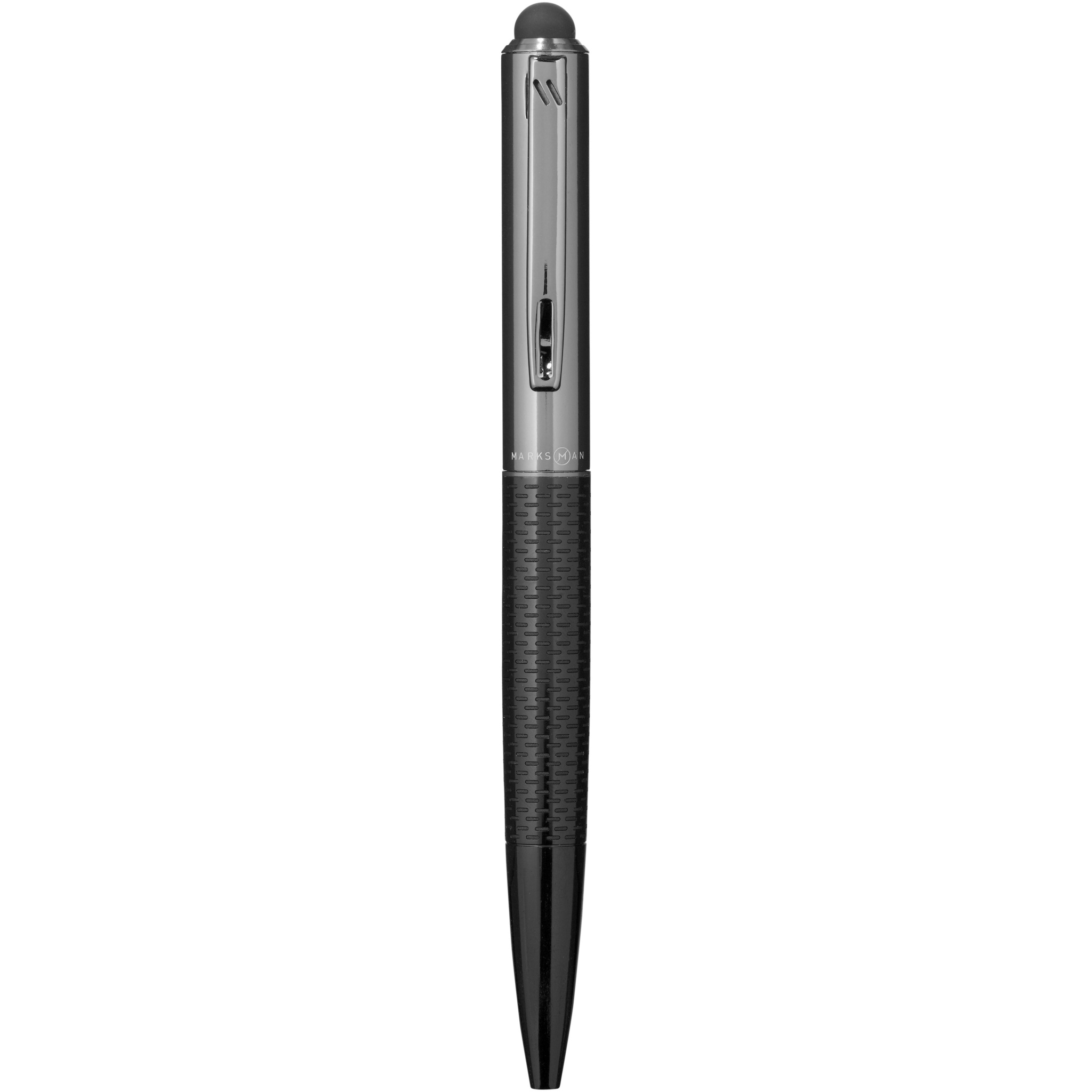 Exklusivt designad kulspetspenna med griffel och snyggt mönstrat lägre skaft. Inkl. premium kvalitet svart bläckpåfyllning och förpackad i en Marksman presentförpackning...