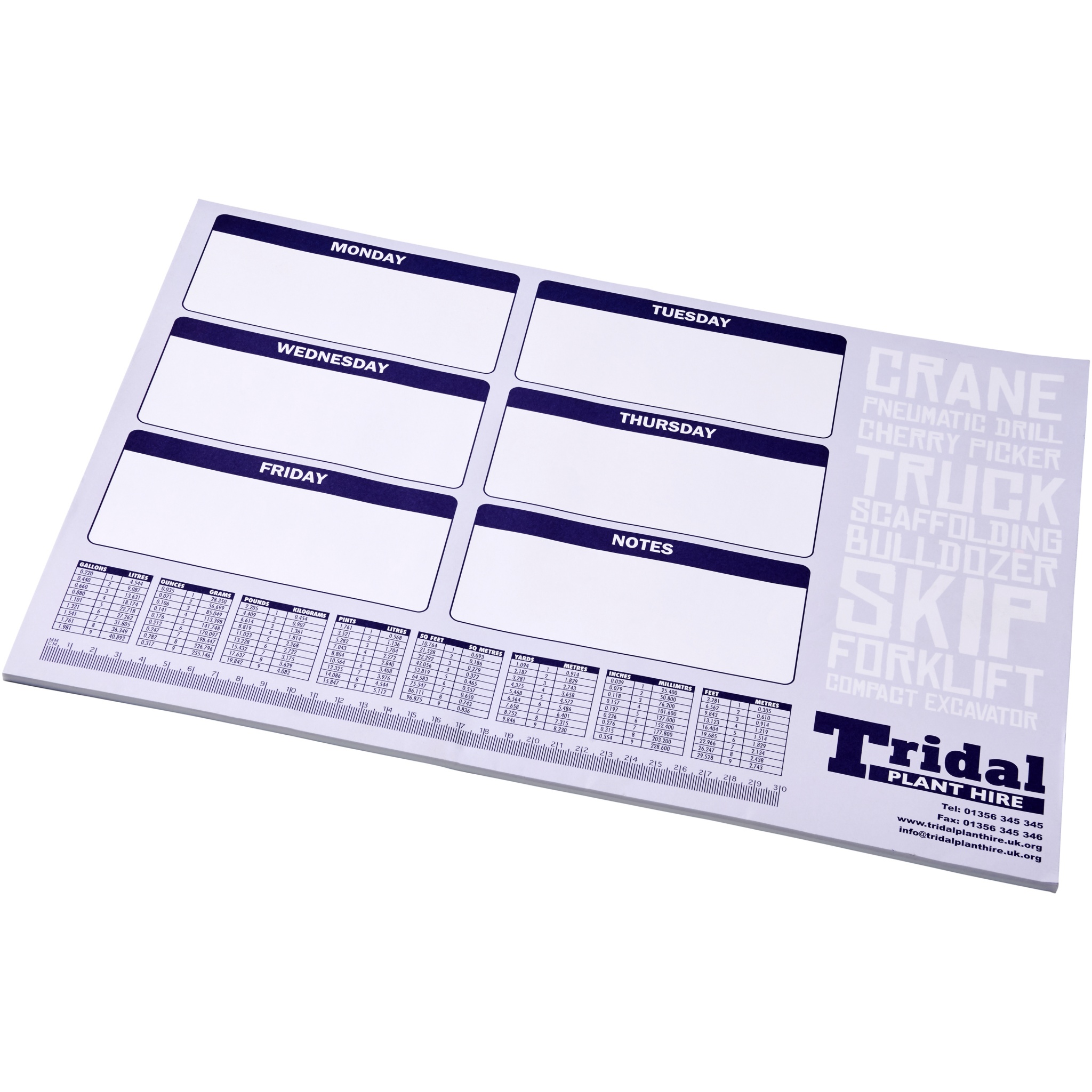Vit A2 Desk-Mate® anteckningsblock. Standardmodell Innehåller 50 ark 80 g / m2 papper. Fullfärgstryck tillgängligt för varje ark. 2 storlekar tillgängliga: 25/50 ark.