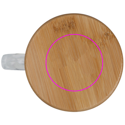 Dubbelväggig glasmugg med 350ml kapacitet och bambulock, på vilken din logotyp kommer att graveras.