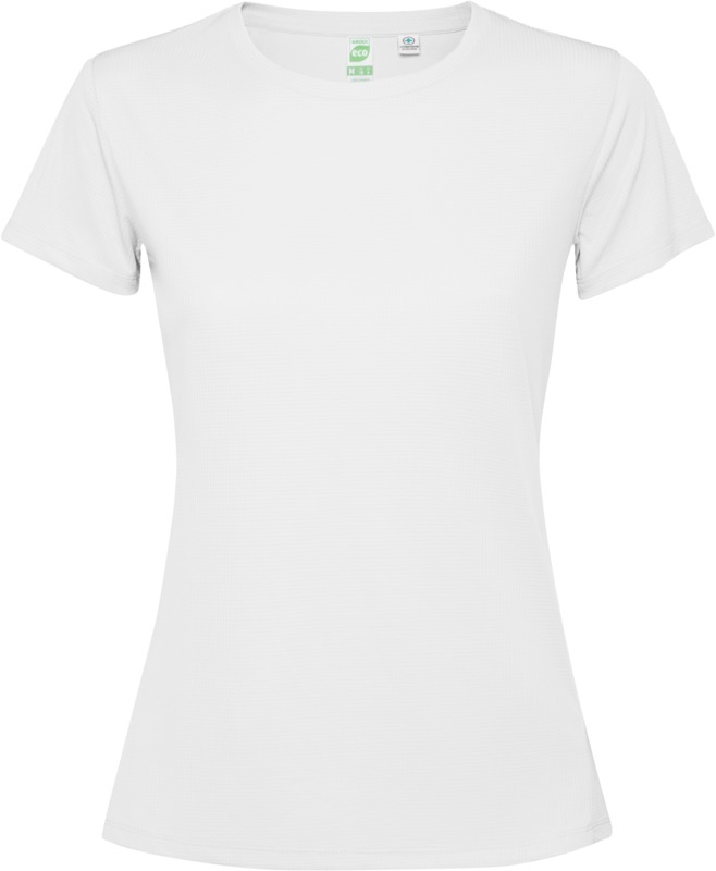 Kortärmad, figursydd teknisk T-shirt för dam. Krage med matchande sömmar. Bakre fållen något längre än den främre. Sidosömmarna har flyttats framåt.