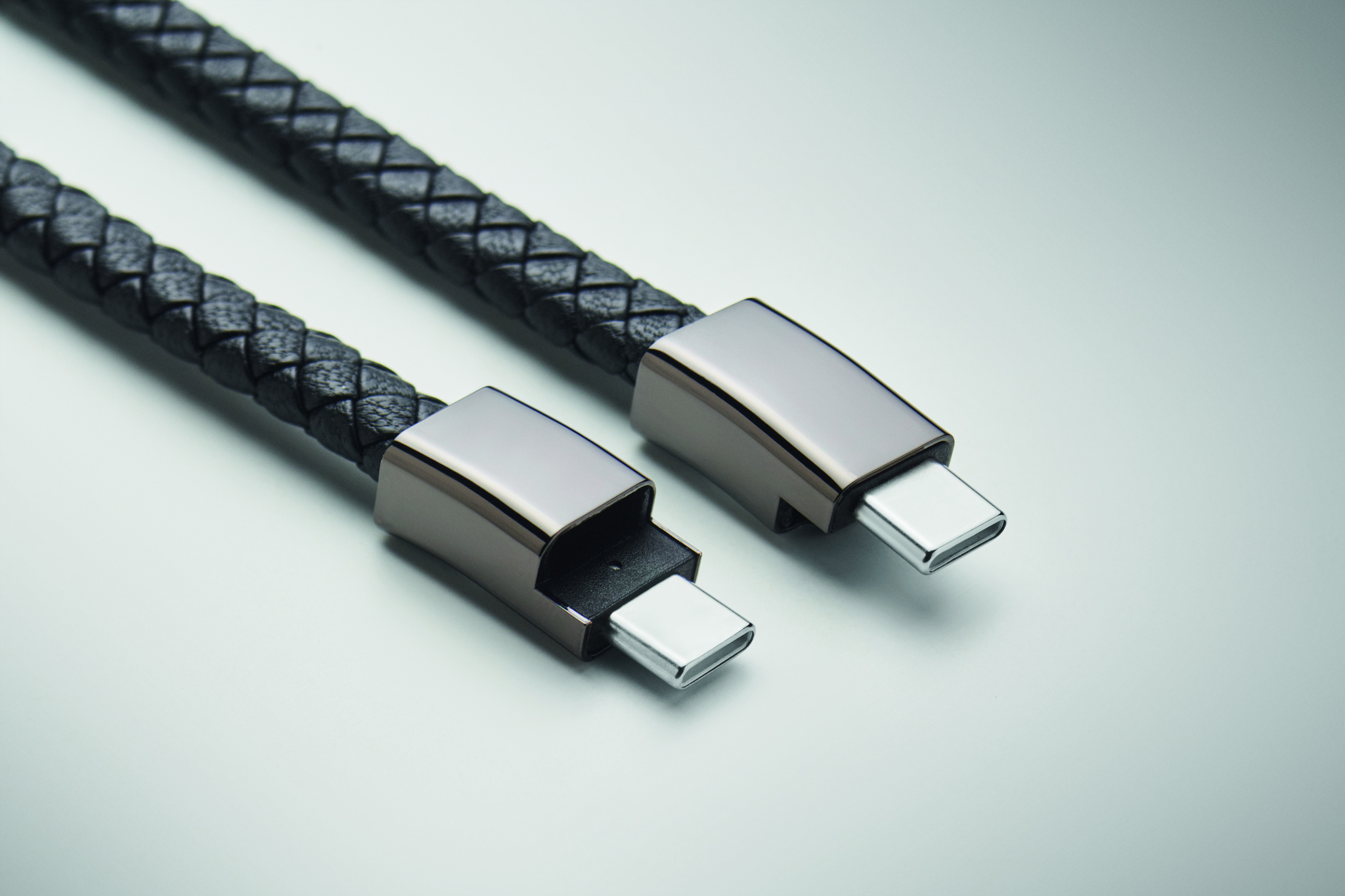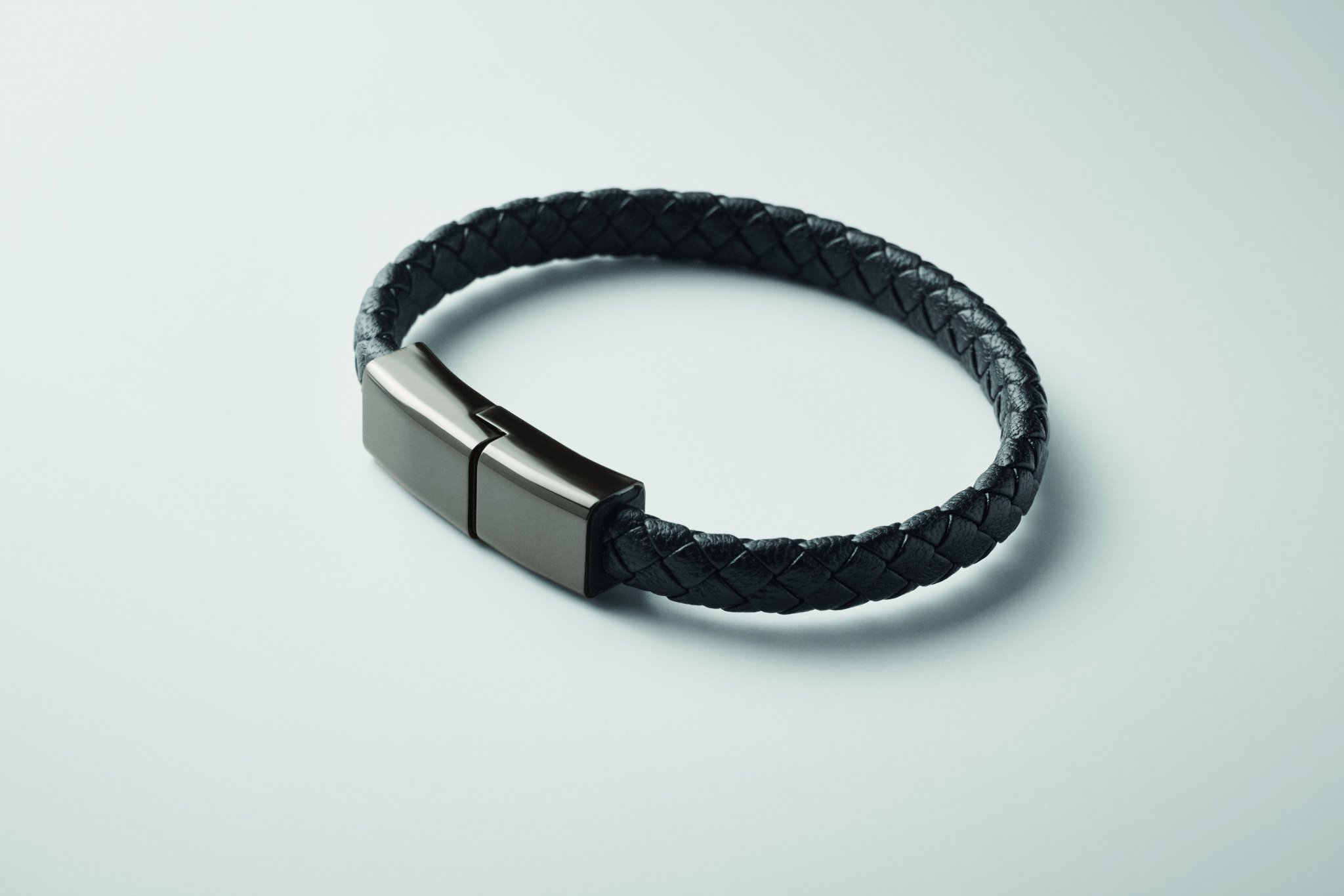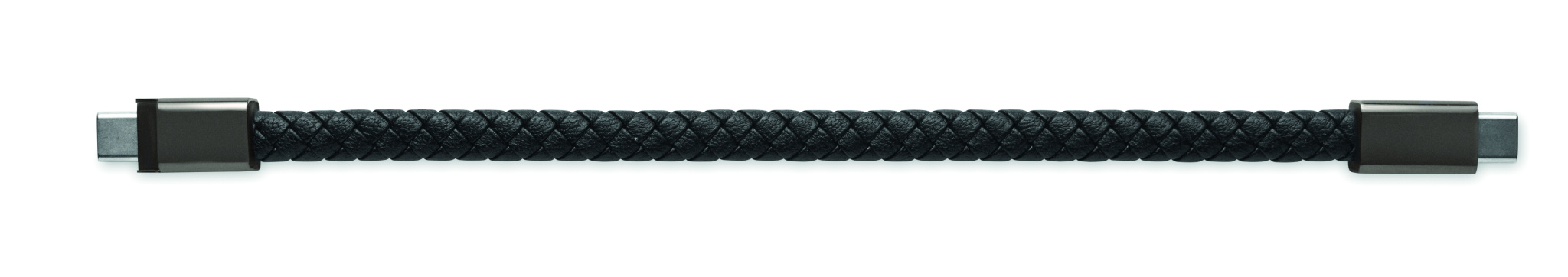 Armband med laddnings- och dataöverföringskabel 60W typ-C till typ-C i PU med flätad detalj i zinklegering. Handledsomkrets ca: 21 cm.
