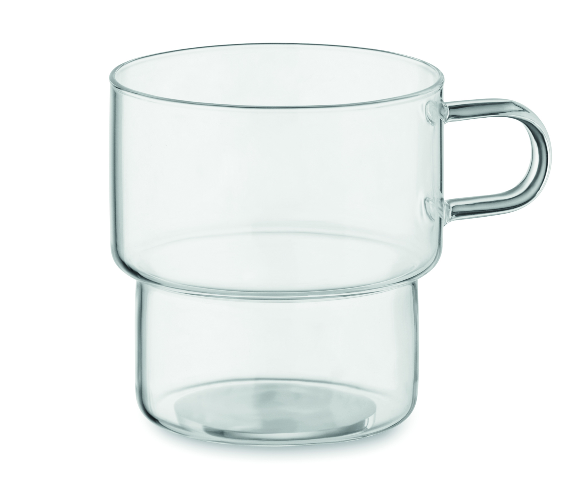 Stapelbar mugg i borosilikatglas med hög kvalitet. Volym: 300 ml