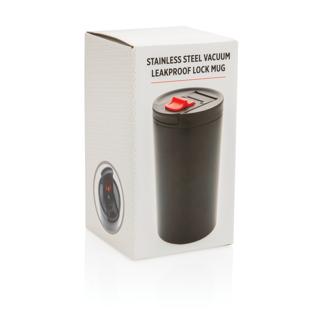 Dubbelväggig vakuummugg med läckagesäkert lock i behändig storlek för din medhavda dryck. Det läckagesäkra klafflocket är designat för enkel öppning/stängning och on-the-go-användning. Vakuumisoleringen håller din dryck varm i upp till 5 tim och kyld i upp till 15 tim. Volym: 300ml. BPA.fri.