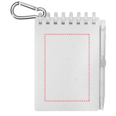 Uppsättningen med den lilla anteckningsboken Lig och penna är en kompakt och praktisk följeslagare för anteckningar när du är på språng. Den spiralbundna anteckningsboken har ett mjukt omslag av återvunnen plast och 70 blanka ark av 120 g/m² vattenresistent stenpapper, vilket gör den idealisk för utomhusbruk. Med rundade hörn och en inbyggd pennögla följer den trenden med ministorlek samtidigt som den är funktionell. Den matchande kulspetspennan är tillverkad av återvunnen ABS-plast, har svart bläck och en skrivlängd på 250 meter. En färgkoordinerad metallring gör att setet enkelt kan fästas på en ryggsäck, handväska eller nyckelring, vilket gör den perfekt för hållbara och bärbara anteckningar. Storlek på anteckningsbok: 11 x 7,5 cm.