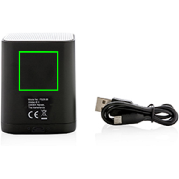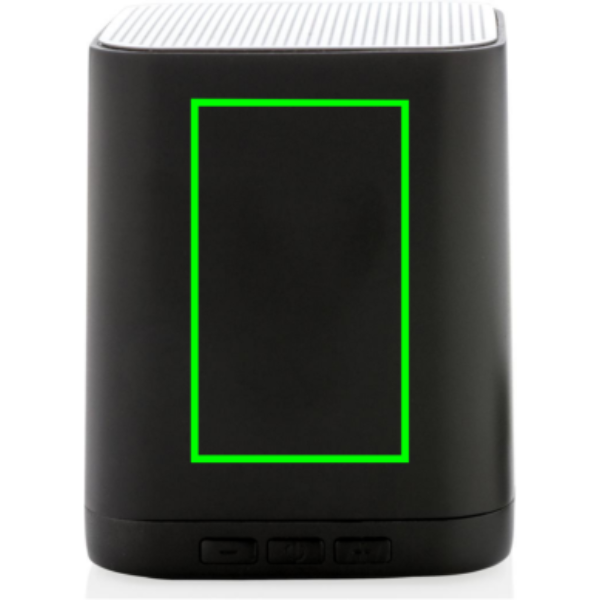 Trådlös 3W högtalare som kan graveras med en logga på ABS-ytan. Loggan lyses upp vilket skapar maximal exponering av varumärket. Högtalaren använder BT 4.2 för smidig anslutning som ger en räckvidd på upp till 10 meter. Det inbyggda 400 mAh batteriet ger en speltid på upp till 4 timmar på en laddning och att ladda upp produkten tar endast 1 timme.