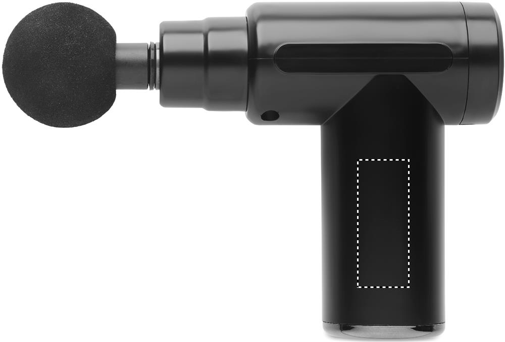 Bärbar muskelmassageapparat i ABS med 4 utbytbara massagehuvuden. 6 hastigheter finns tillgängliga. Inklusive uppladdningsbart litiumbatteri på 1200 mAh.
