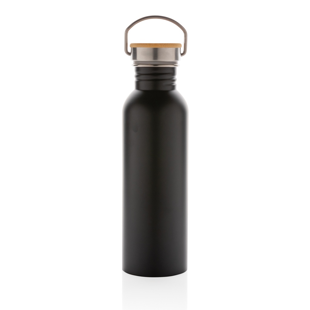 Modern stainless steel flaska med bambulock, svart